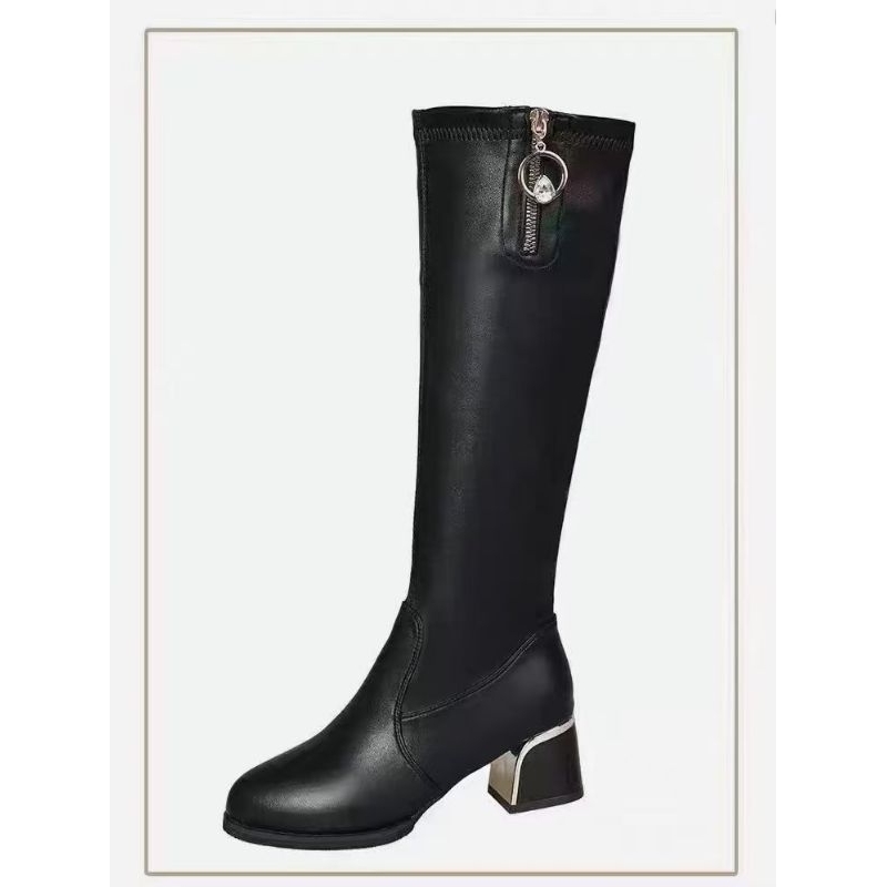Knee Boots Women Leather Winter Shoes Heels Chrome Korea Sepatu Kerja Wanita B97