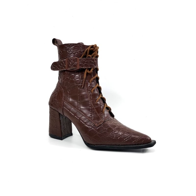 M&T Ankle Boots High Heels Chunky Motif Buaya Cow Leather