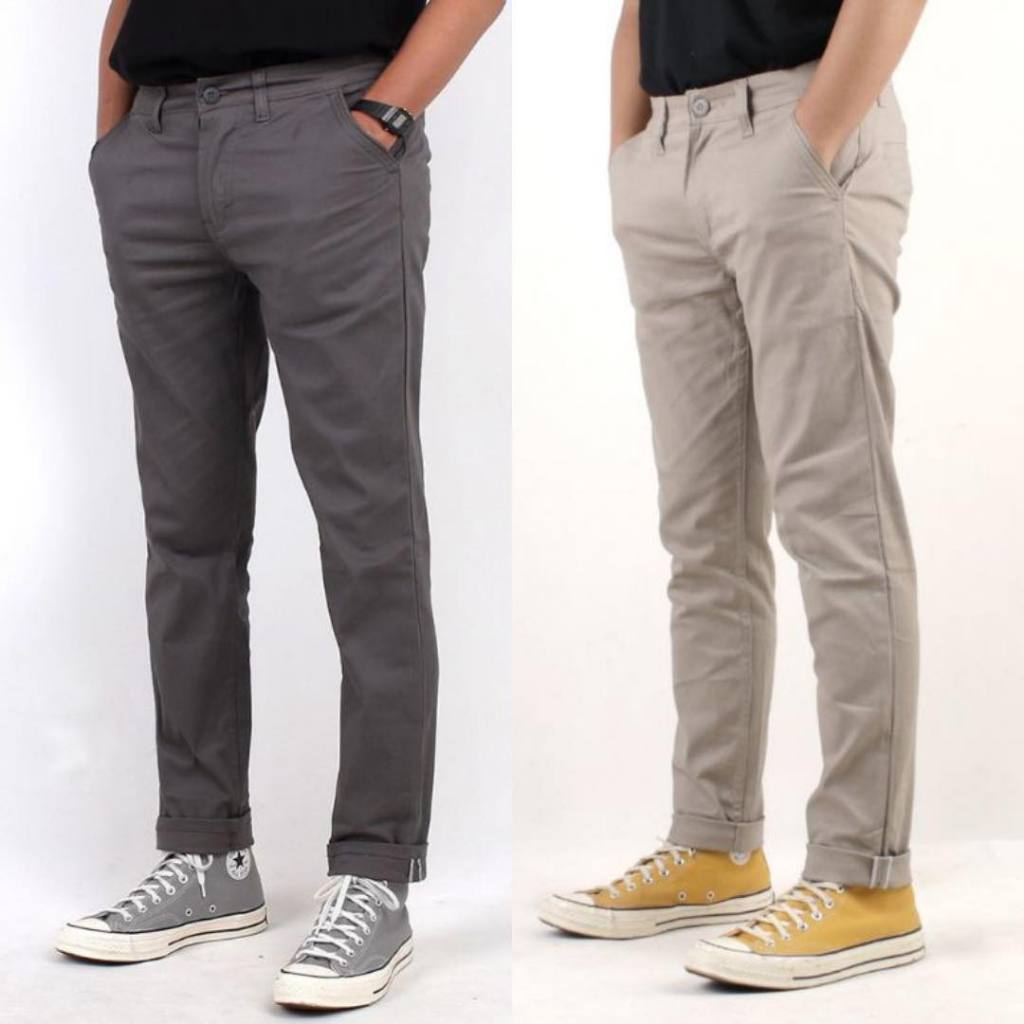 PAKET100RIBUAN 2PCS CELANA PANJANG SLIMFIT CHINOS PREMIUM BAHAN KATUN TWILL ELASTIS MELAR