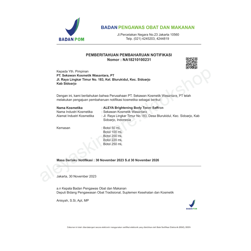 Aleya Saffron Brightening Body Toner Badan With Saffron Toner Saffron Whitening Agent Pencerah Badan