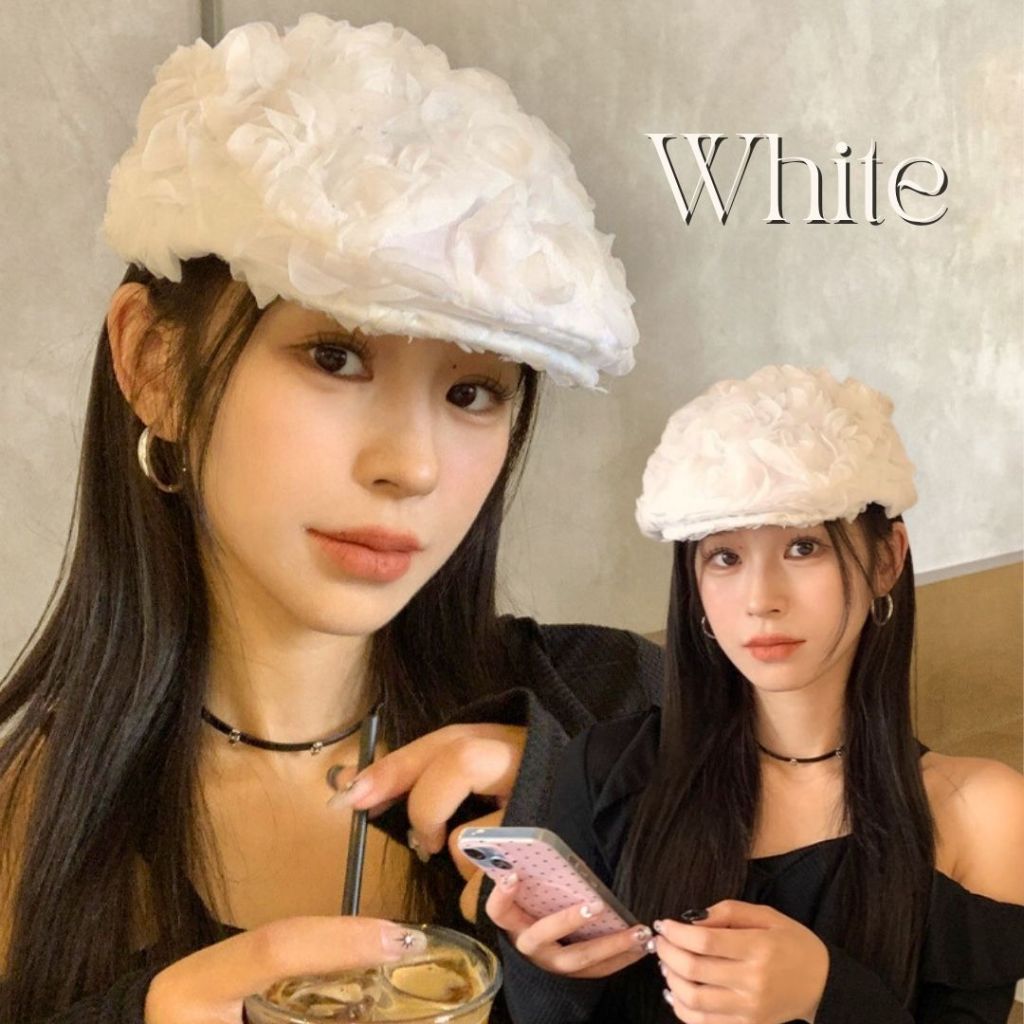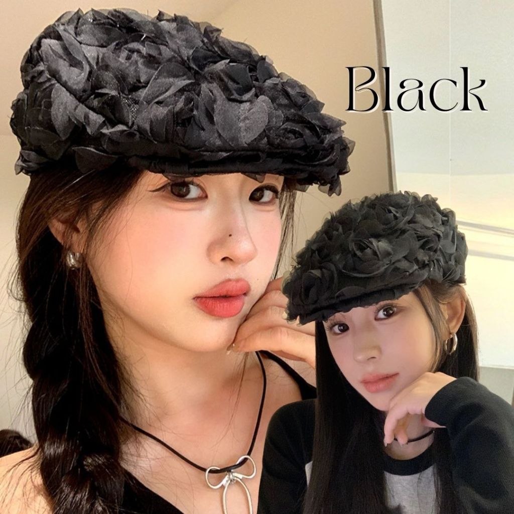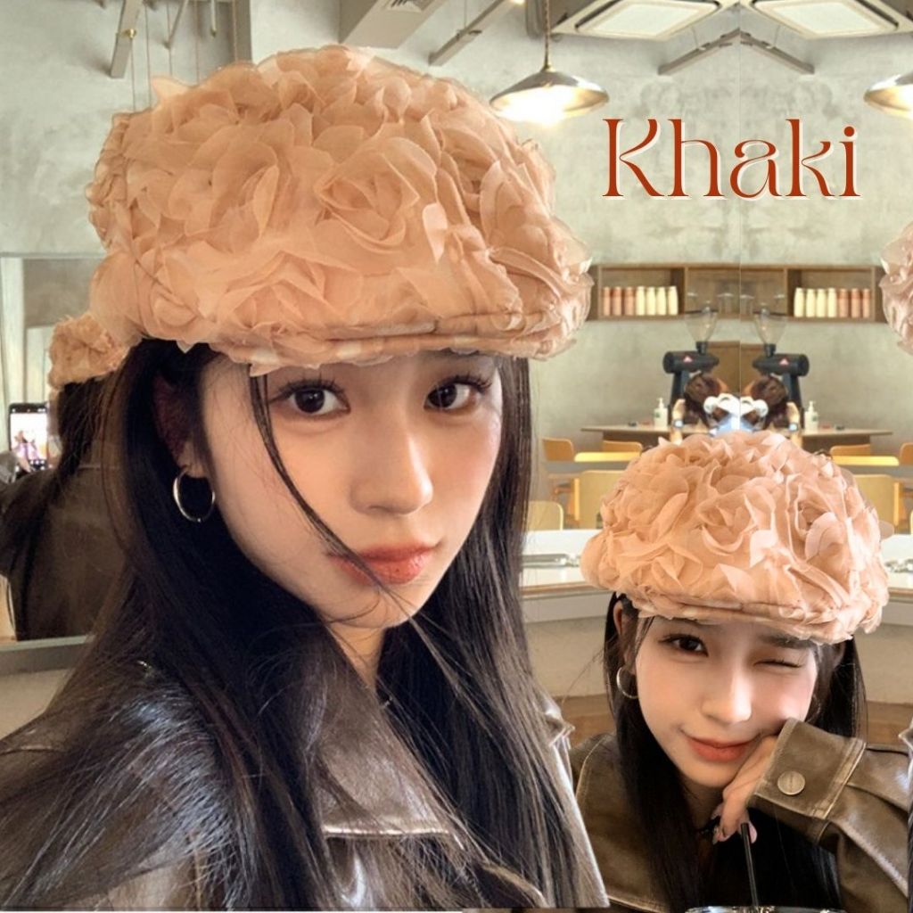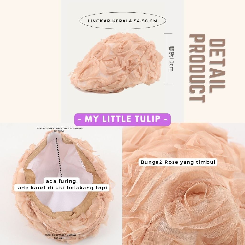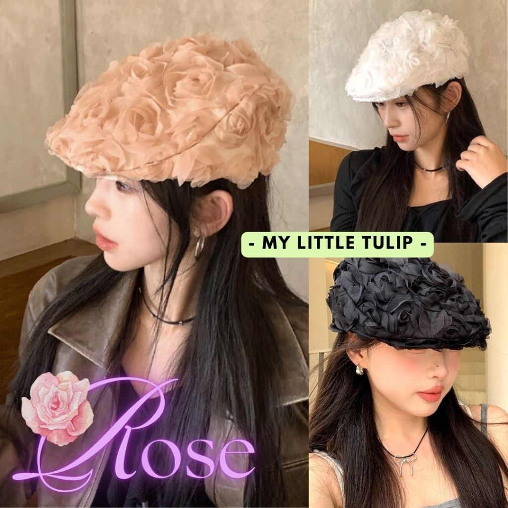 Topi Pelukis Wanita / Topi Baret Rose / Topi Beret Cantik / Topi Wanita Bunga Rose