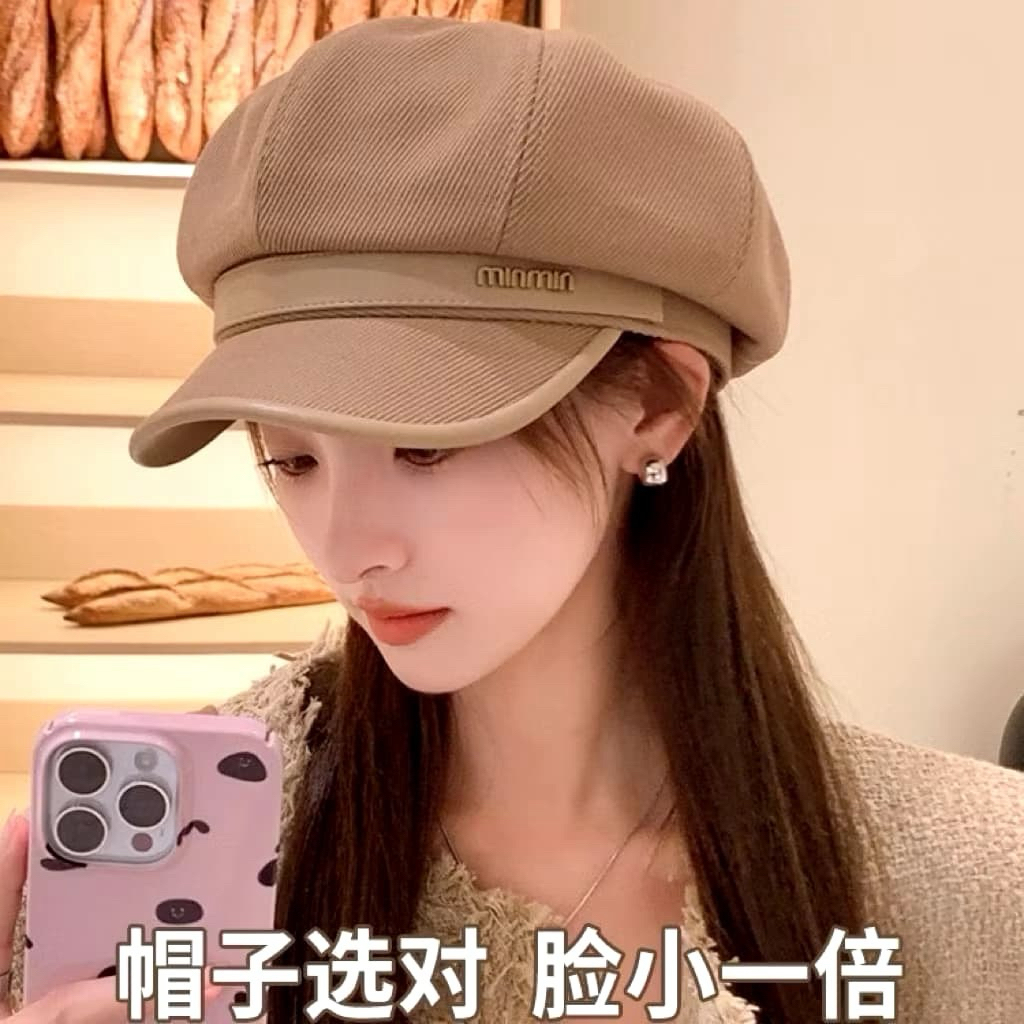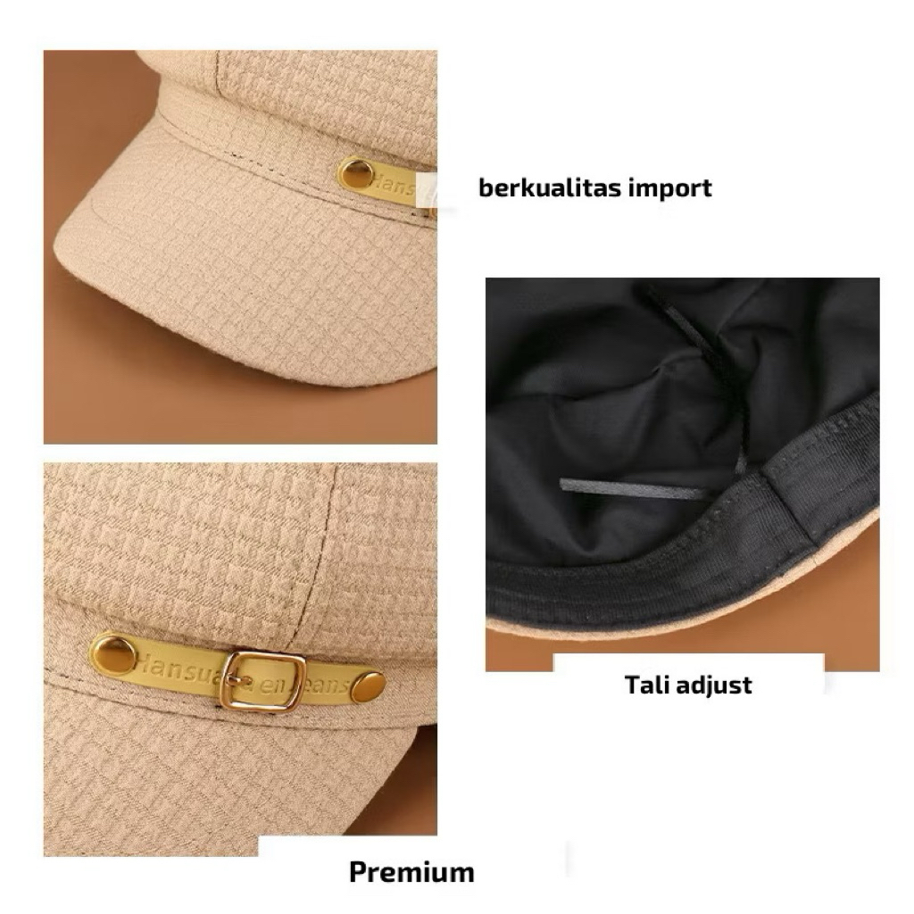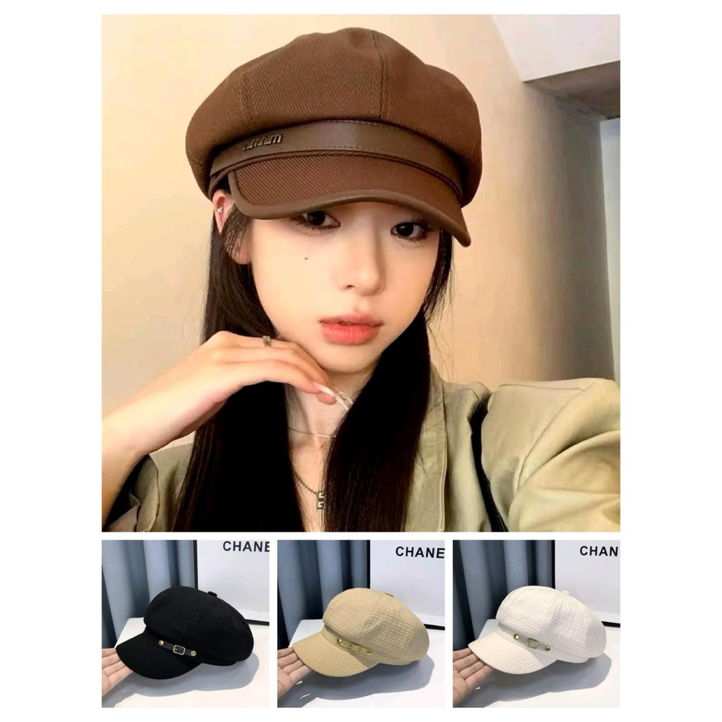 Topi Baret Wanita Kekinian Korean Style Topi Baret Oktagonal PU Retro