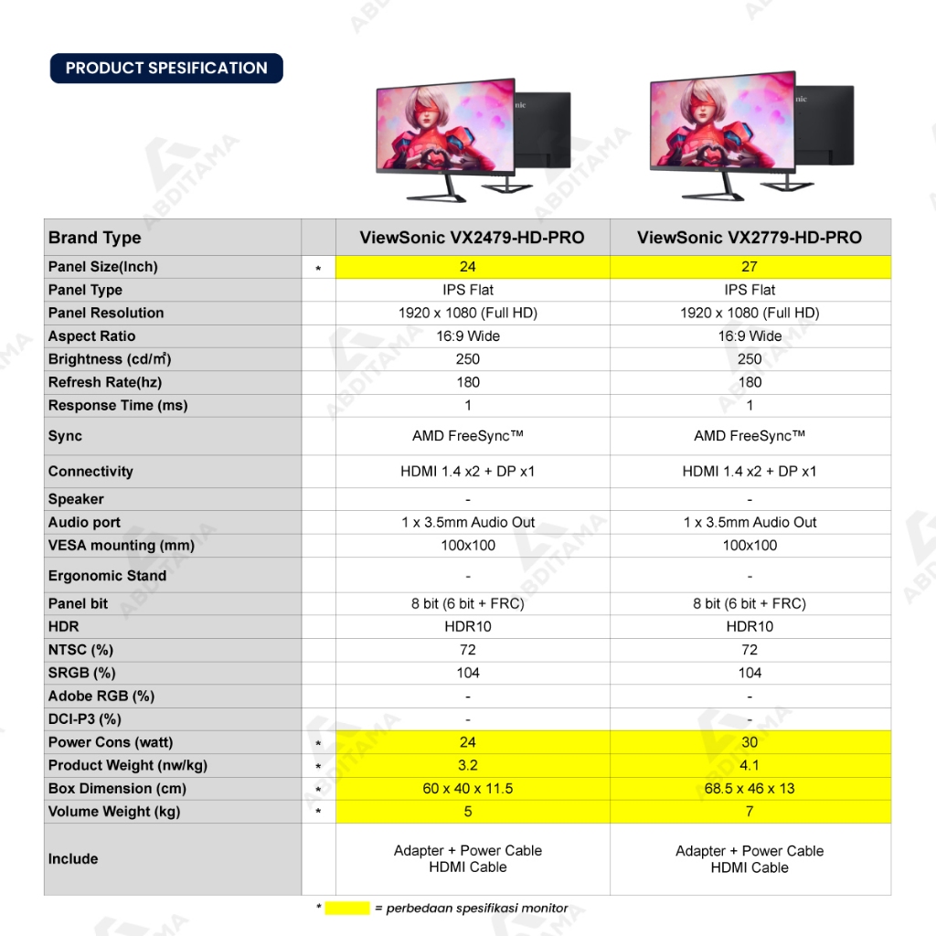 MONITOR VIEWSONIC VX2479-HD-PRO / VX2779-HD-PRO MONITOR GAMING IPS 1080P 180HZ 1MS MPRT HDR10 MONITOR PC