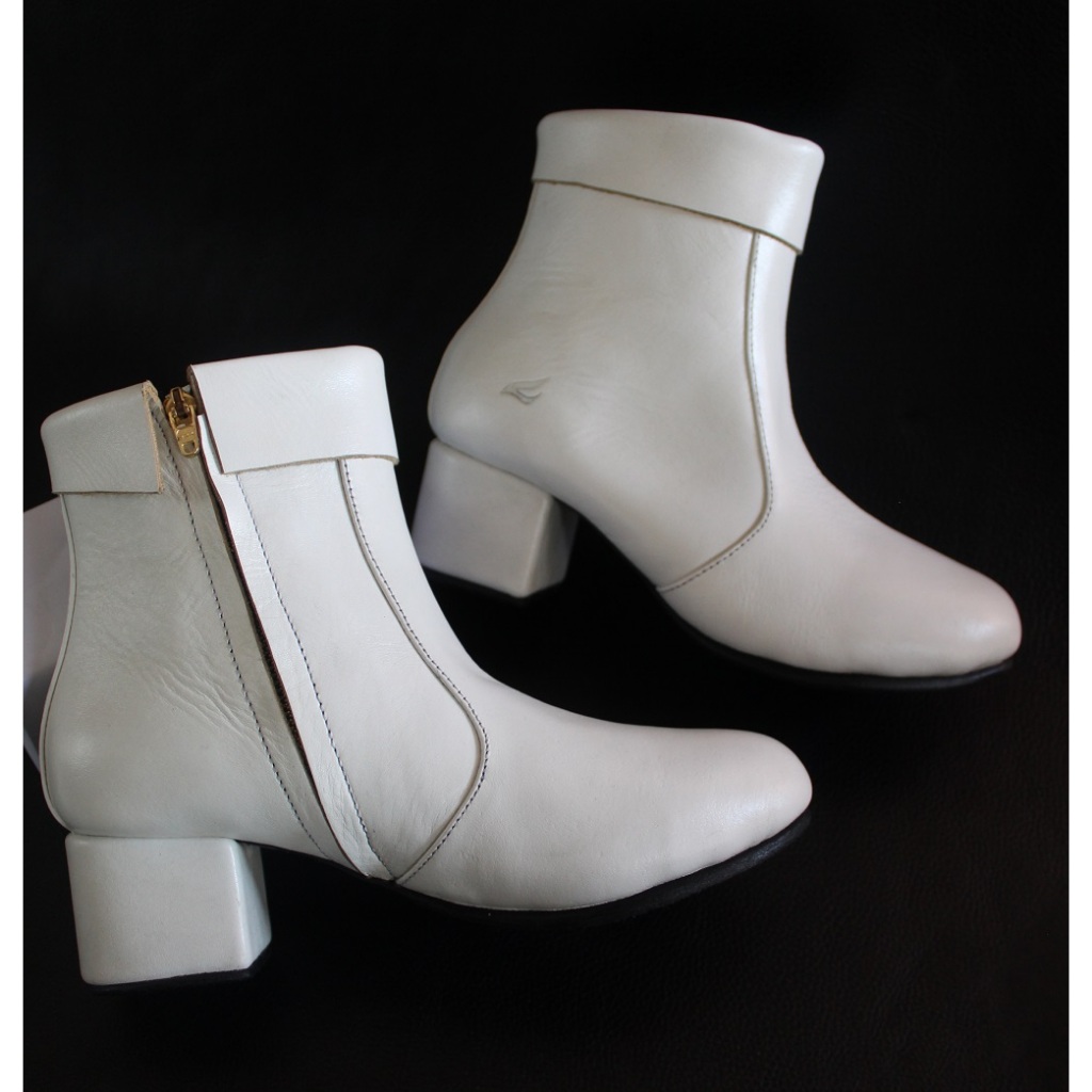 Crefow Carla White Sepatu Boots Wanita Kulit Size 34-40 Jumbo 41-46