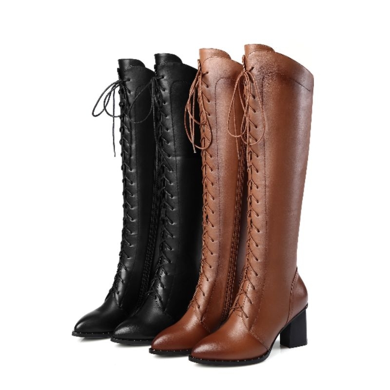 M&T Sepatu Boots Selutut Wanita High Knee Themis Cow Leather