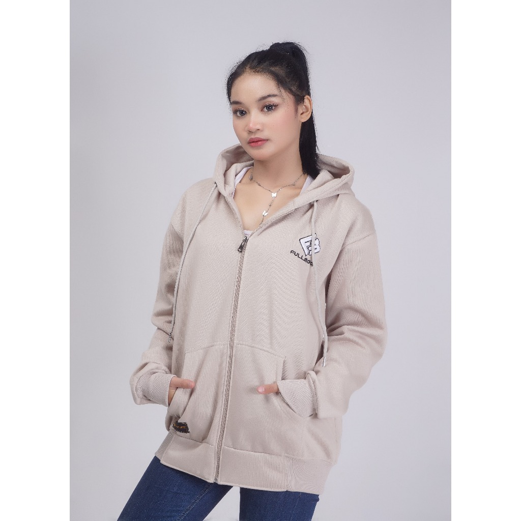 HOODIE ZIPPER FULLMOON UNISEX CEWEK COWOK BORDIR TIMBUL 3D BAHAN FLECEE TEBAL 280