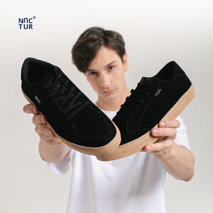 NOCTUR - Sepatu Pria Hitam Gum Casual Kerja Kuliah Bahan Kulit Suede 38 - 44 N-204
