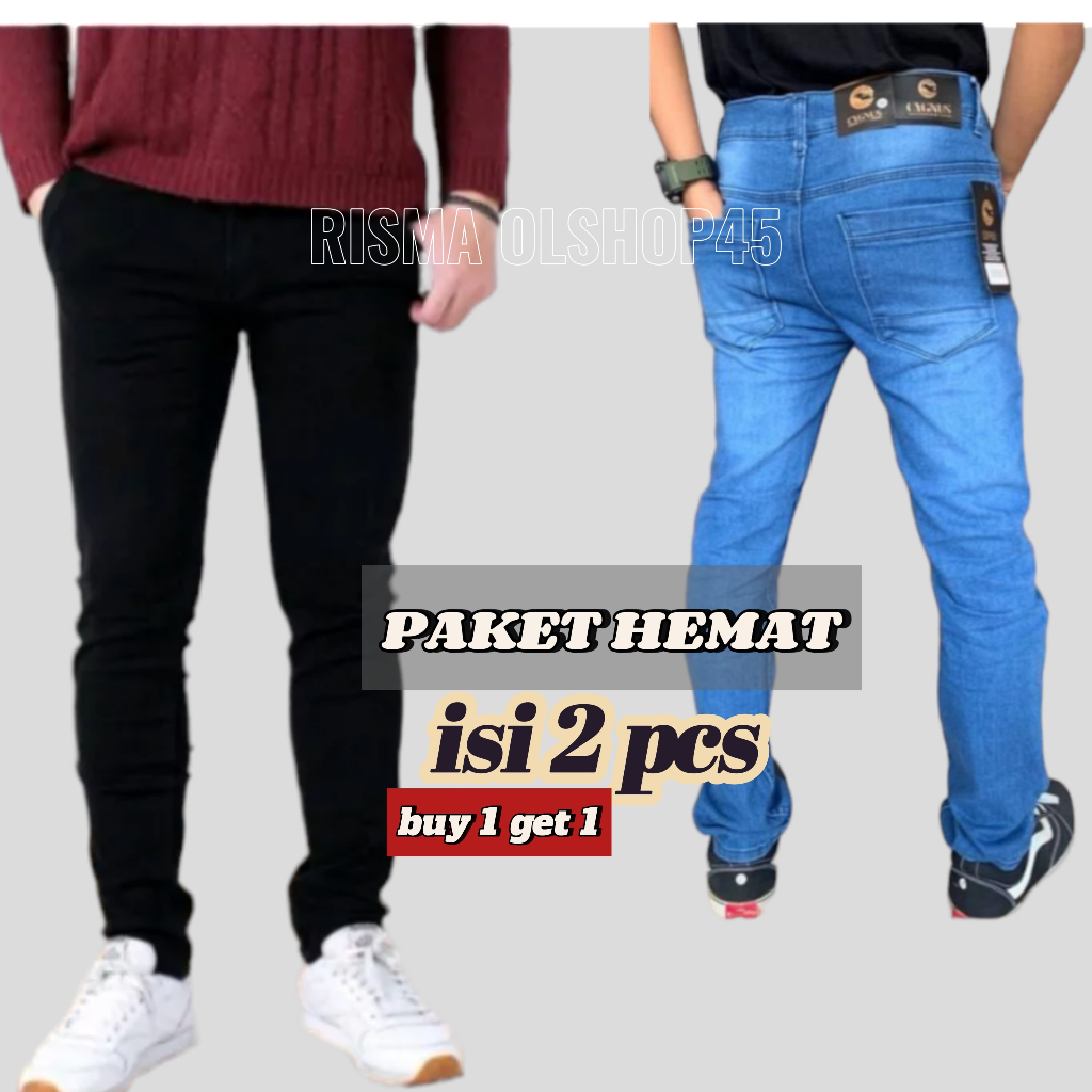 Paket Hemat Beli 1 Gratis Satu Celana Jeans Pria Slimfit Bahan Melar Sofe Jeans Premium Pensil Cowok
