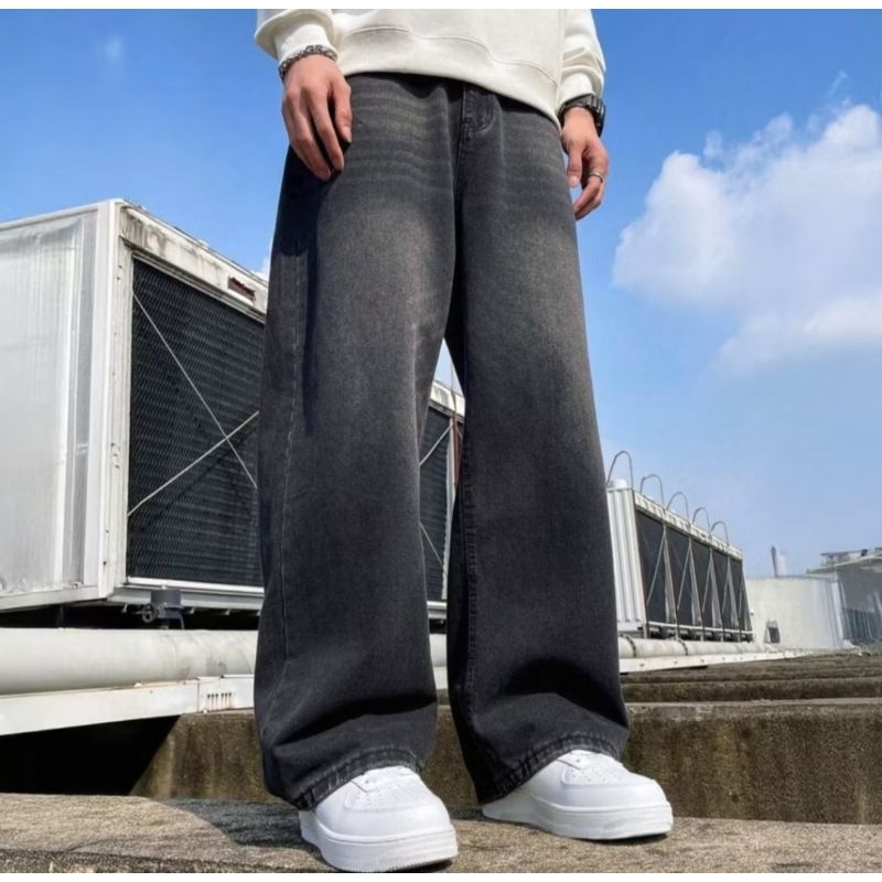Celana Jeans Panjang Pria Loose Wisker Skena Baggy Hitam Retro Jeans Size 27 - 36 Reguler
