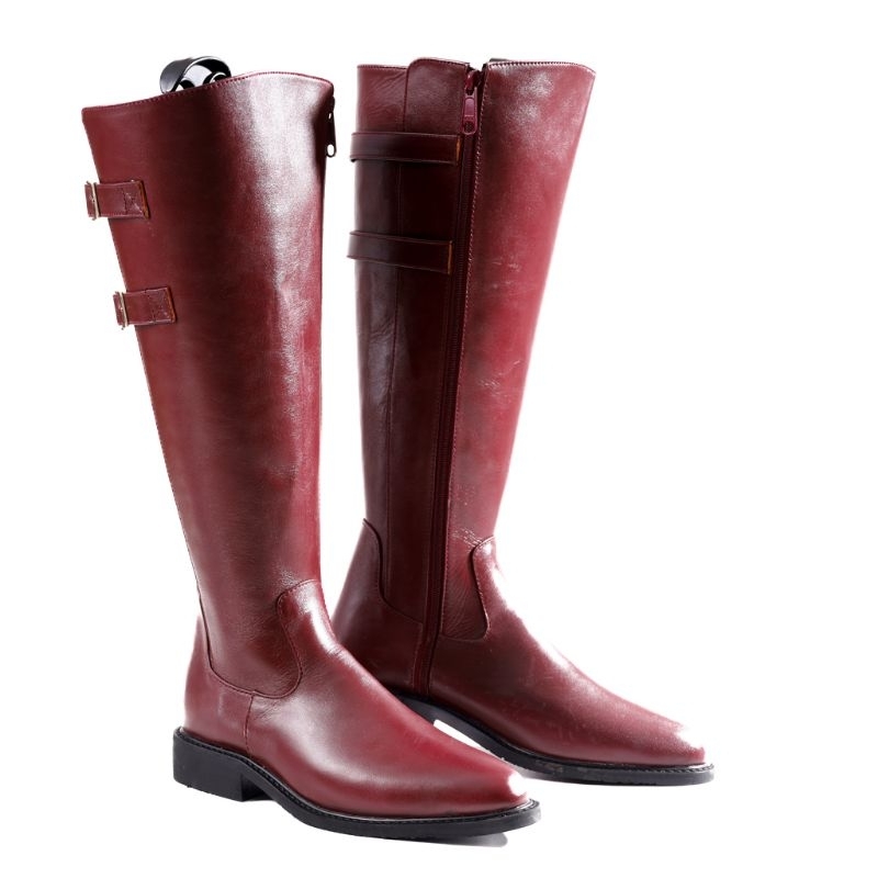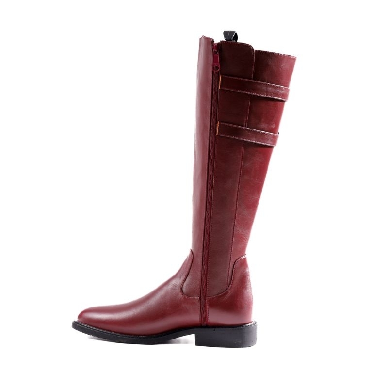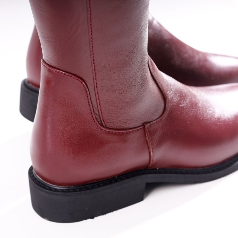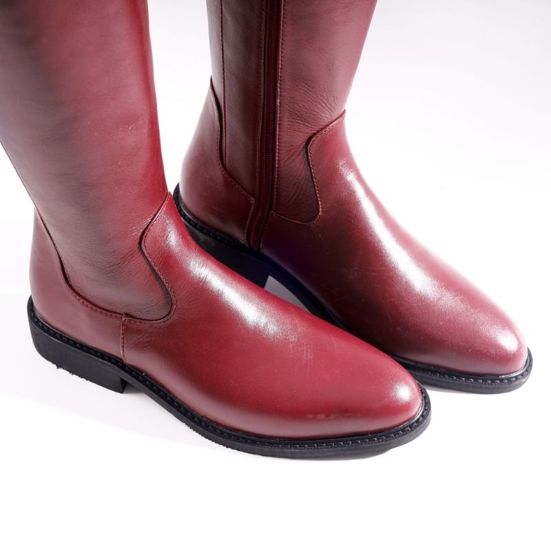 M&T Knee High Boots Wanita Croriss Maroon Leather