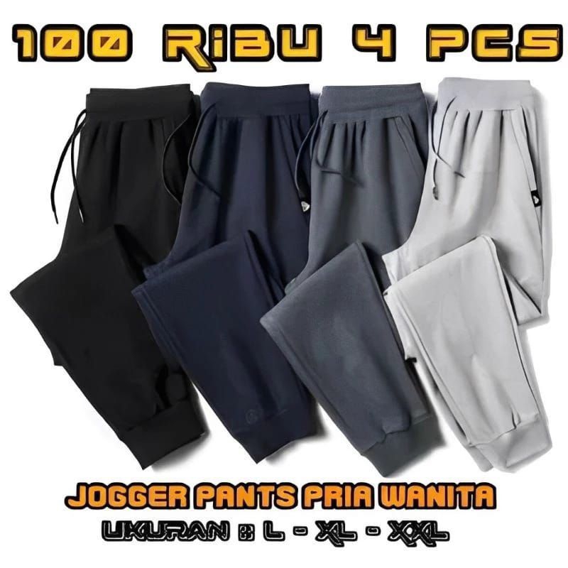 Hemat 4 Pcs 100 Ribu Celana Jogger Training Pria Wanita