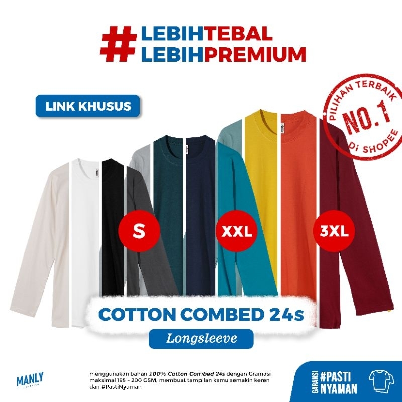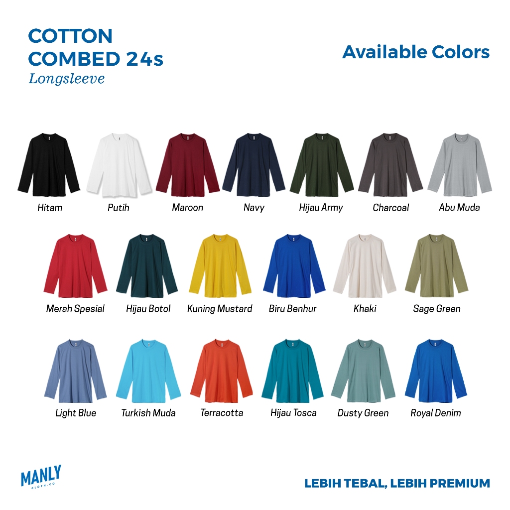 S, XXL, 3XL Lengan Panjang 24s ( #LebihTebal ) Kaos Polos Cotton Combed 24S