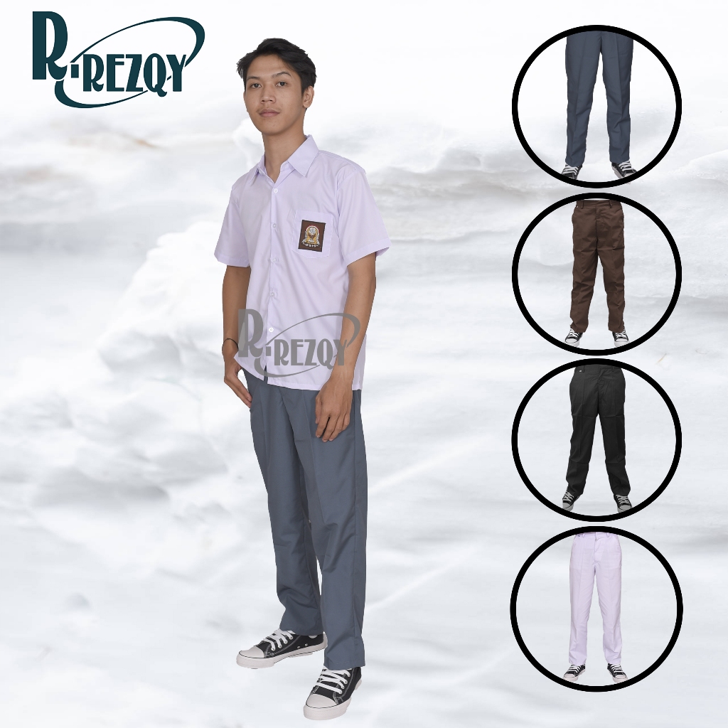 R Rezqy - Celana Sma Panjang Seragam Sekolah Sma Warna Abu Putih Hitam Coklat Pramuka