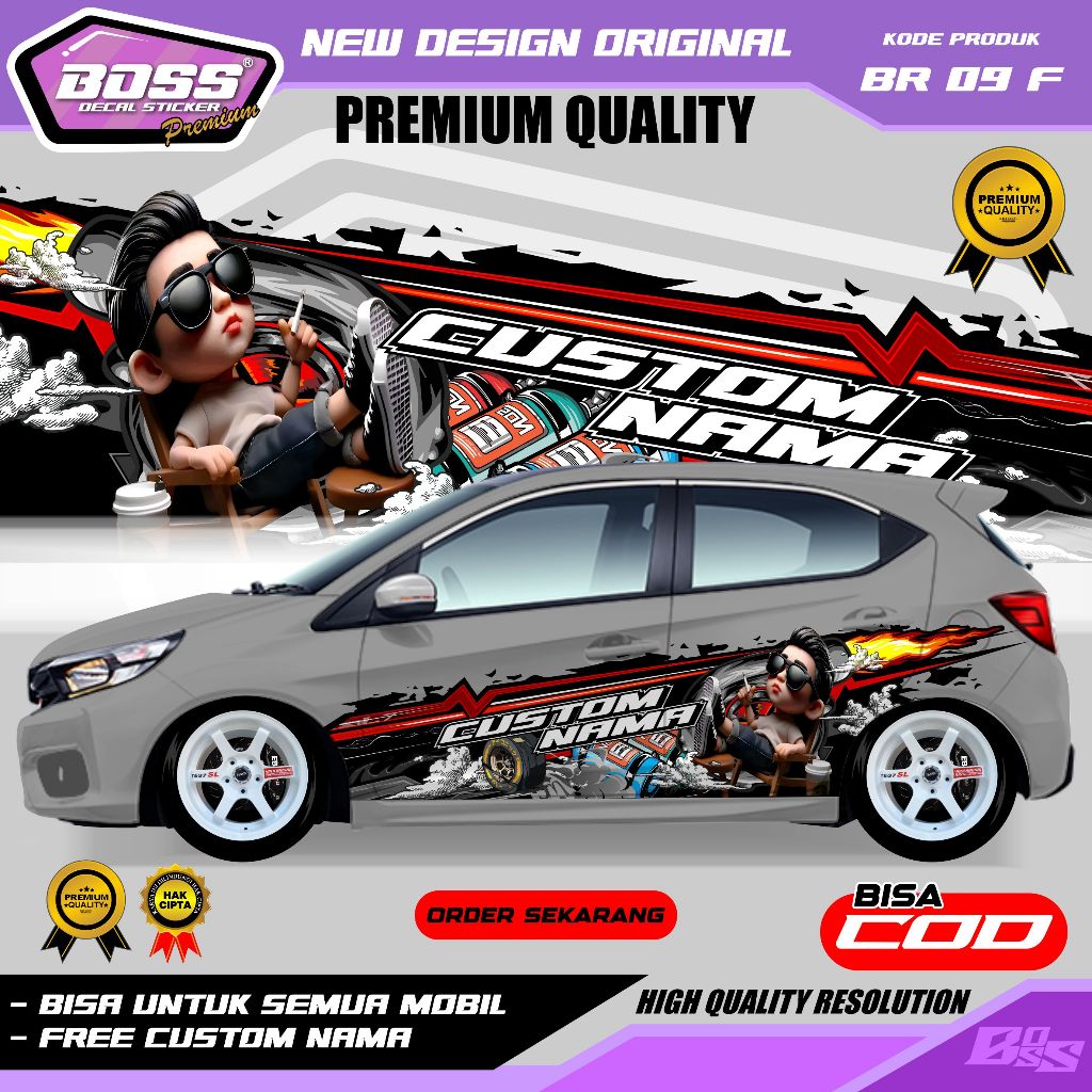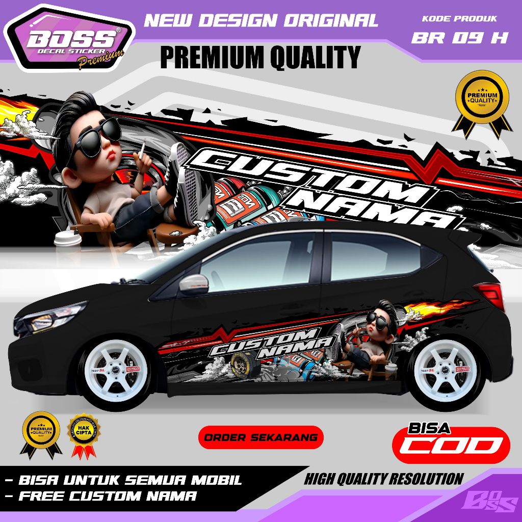 BR 09 - STIKER DECAL MOBIL BRIO PANTHER AVANZA SEDAN INNOVA CALYA SIGRA ERTIGA GRATIS CUSTOM NAMA