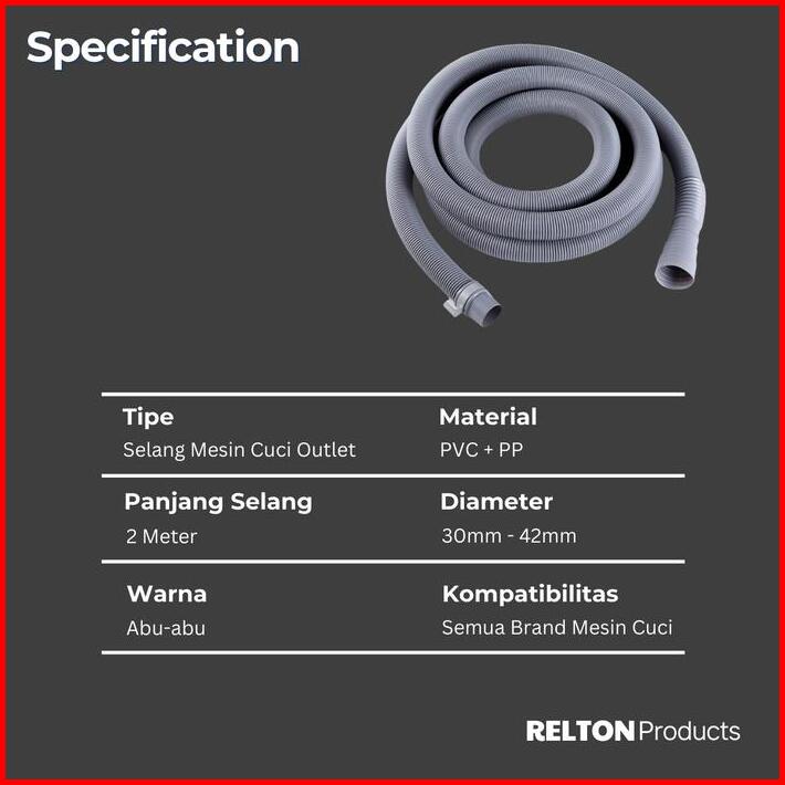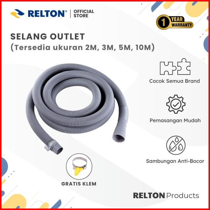 Relton Selang Pembuangan Air Mesin Cuci Outlet Washing Machine Hose 2 Meter 3 Meter 5 Meter 10 Meter