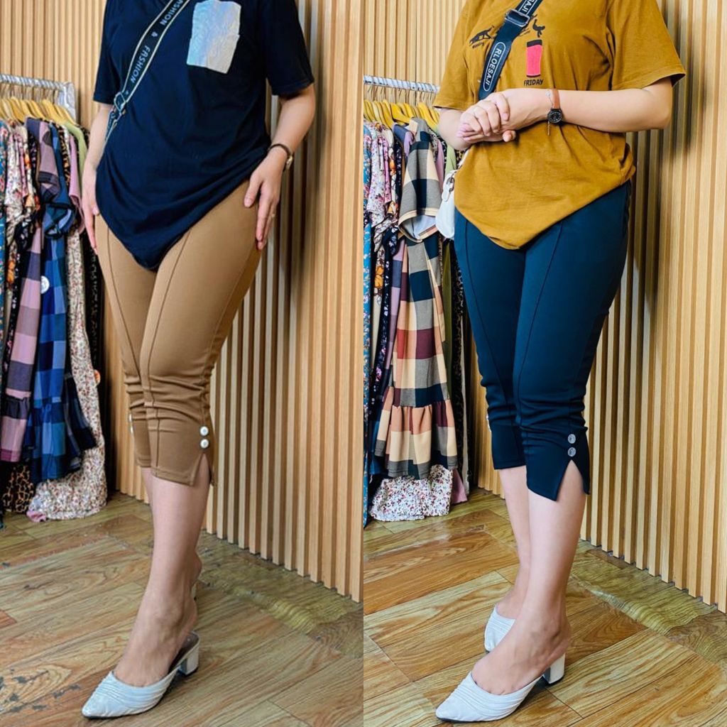 (Polos) CELANA 3/4 KANCING JUMBO WANITA / CELANA Polos CEWEK BIG SIZE / CELANA KAIN / Scuba LIPIT / CELANA SANTAI