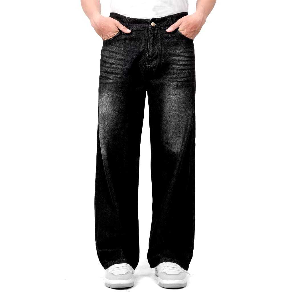 Celana GONDES Jeans Wisker Pria Unisex Wide Leg Gombrong Skena Black Wisker pria loose fit jumbo
