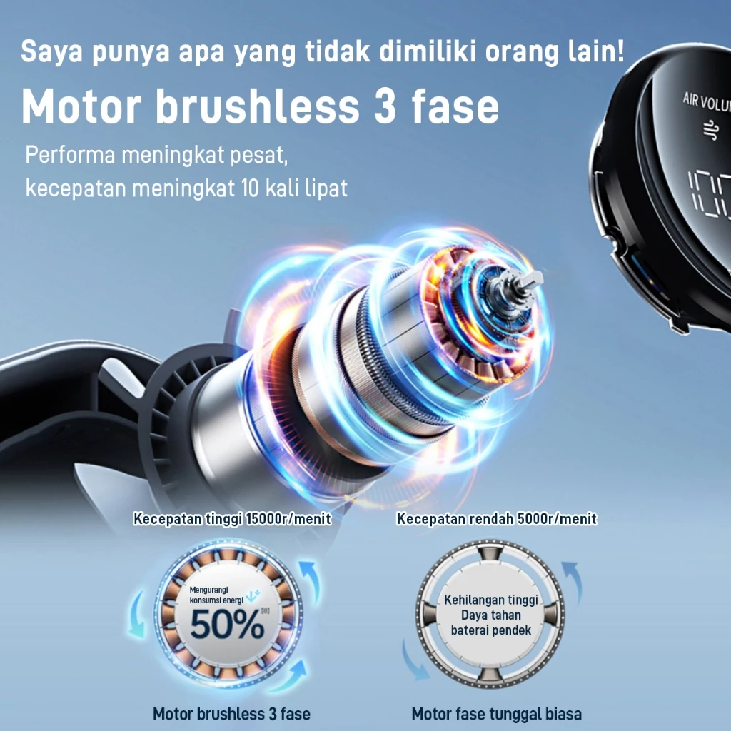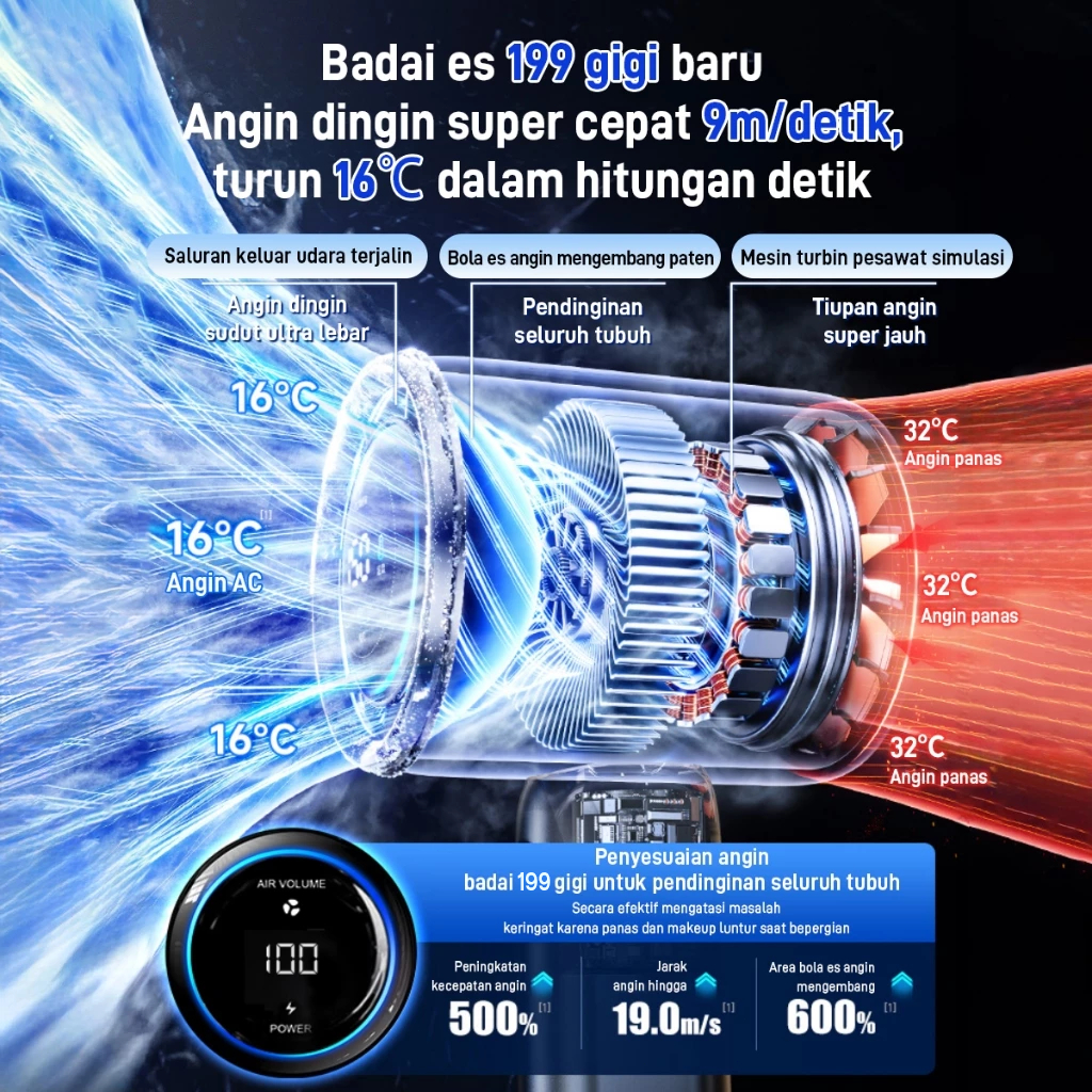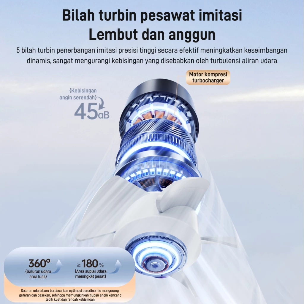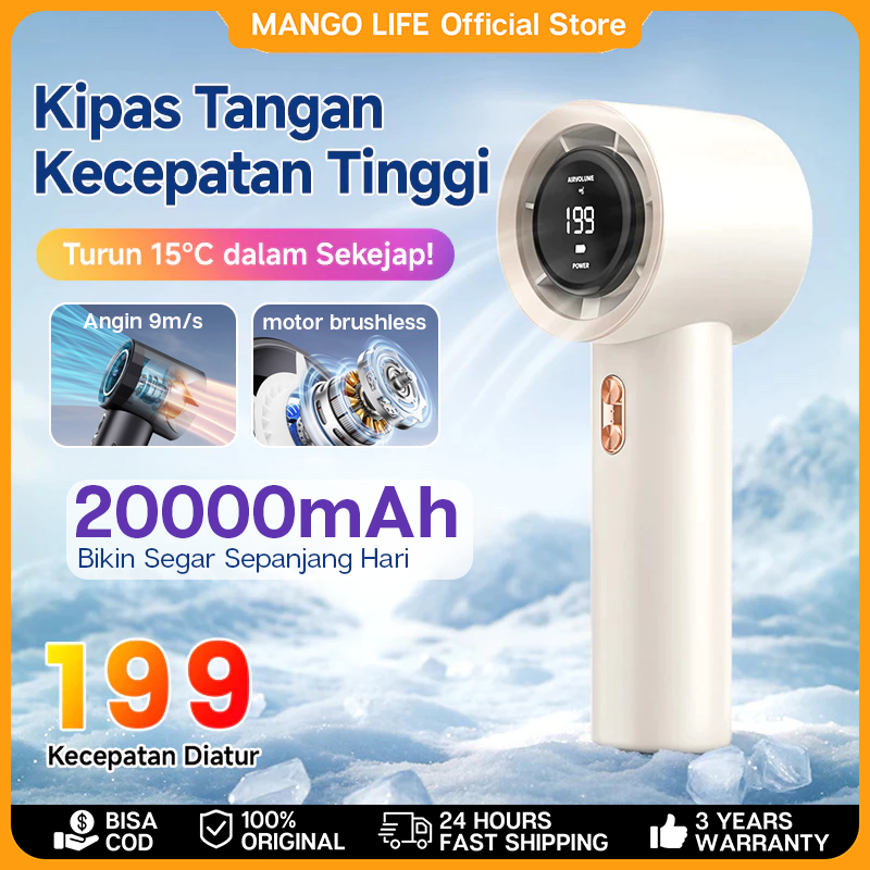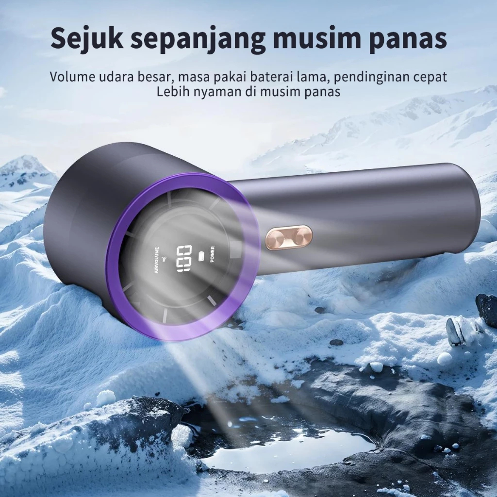 Kipas Tangan Portable Turbo 199 Level Adjustable Baterai 20000mAh Bisa Digantung Tanpa Pisau Senyap Layar Digital USB