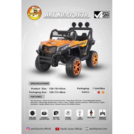 TERLARIS MOBIL AKI MAINAN ANAK JEEP PACIFIC PJ-8610 / PJ8610 / PJ 8610