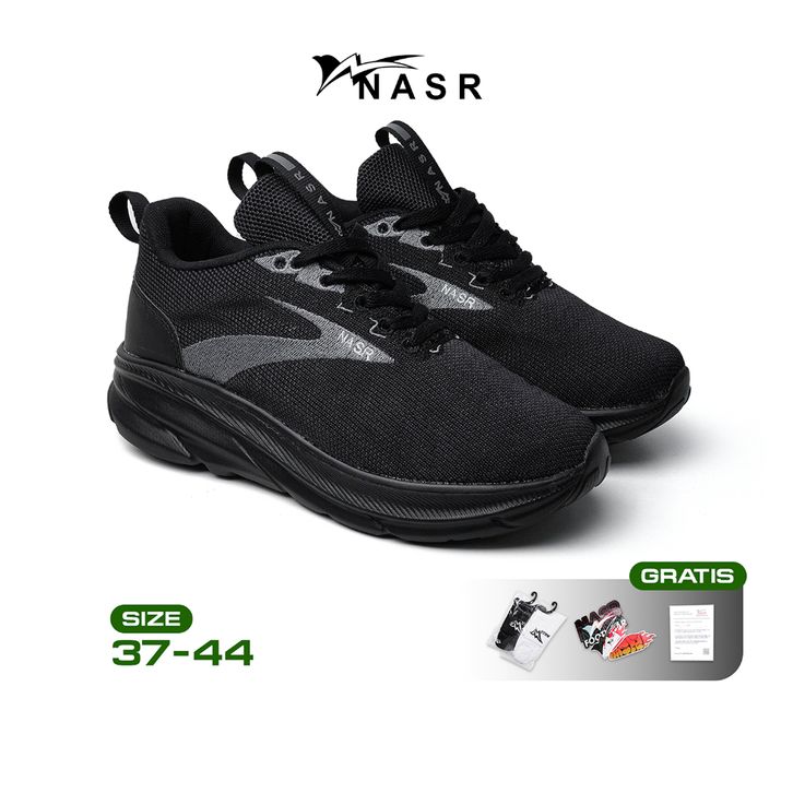 Nasr Running Vortex V2 - Sepatu Olahraga Running Sporty Sneaker Kasual Pria Wanita Unisex Full Black