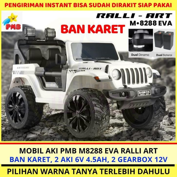 TERLARIS MAINAN MOBIL AKI ANAK PMB 8288 JEEP RUBICON OFF ROAD REMOTE M8288 M-8288 BAN EVA