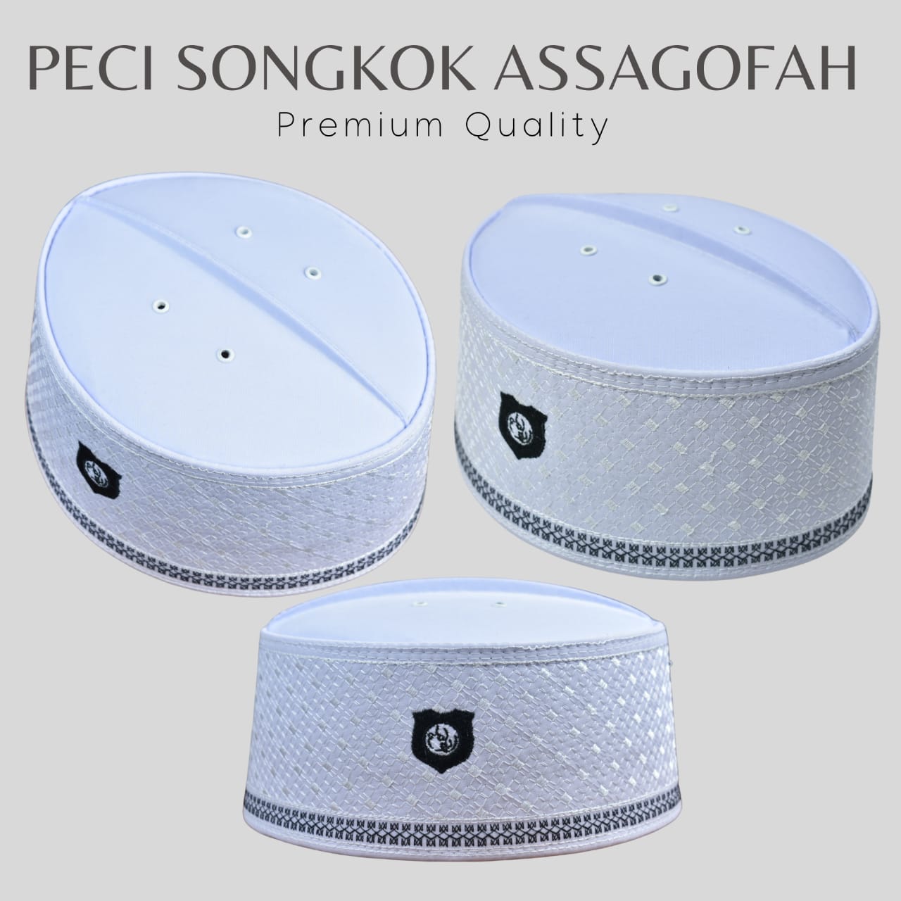 Peci Songkok Assagofah Putih list Hitam Alat Sholat Pria Dewasa & Anak Bagus Harga Terjangkau Aneka Warna & Motif