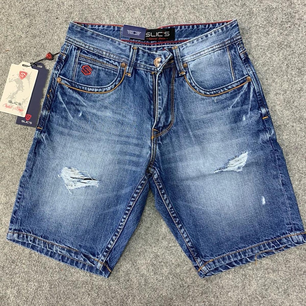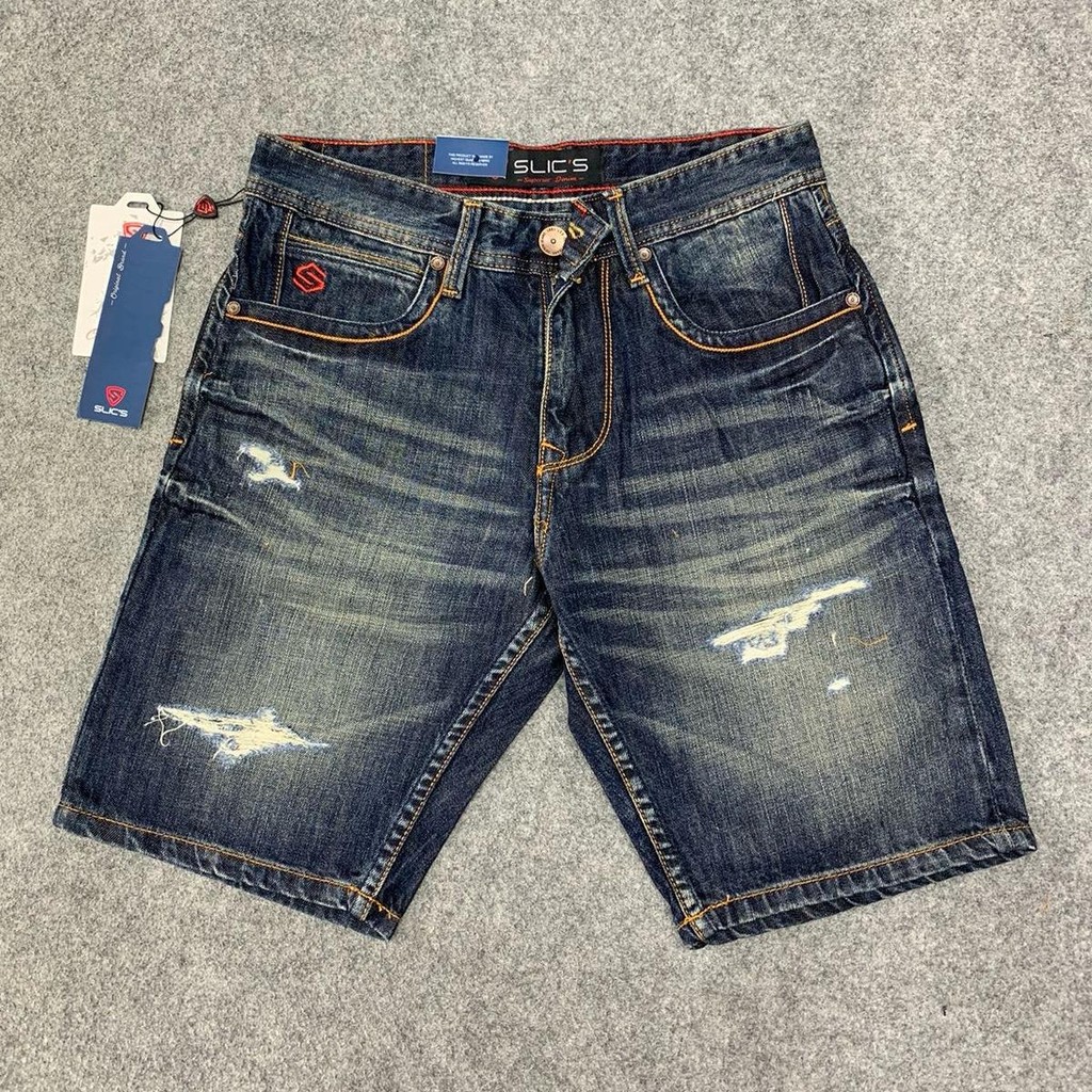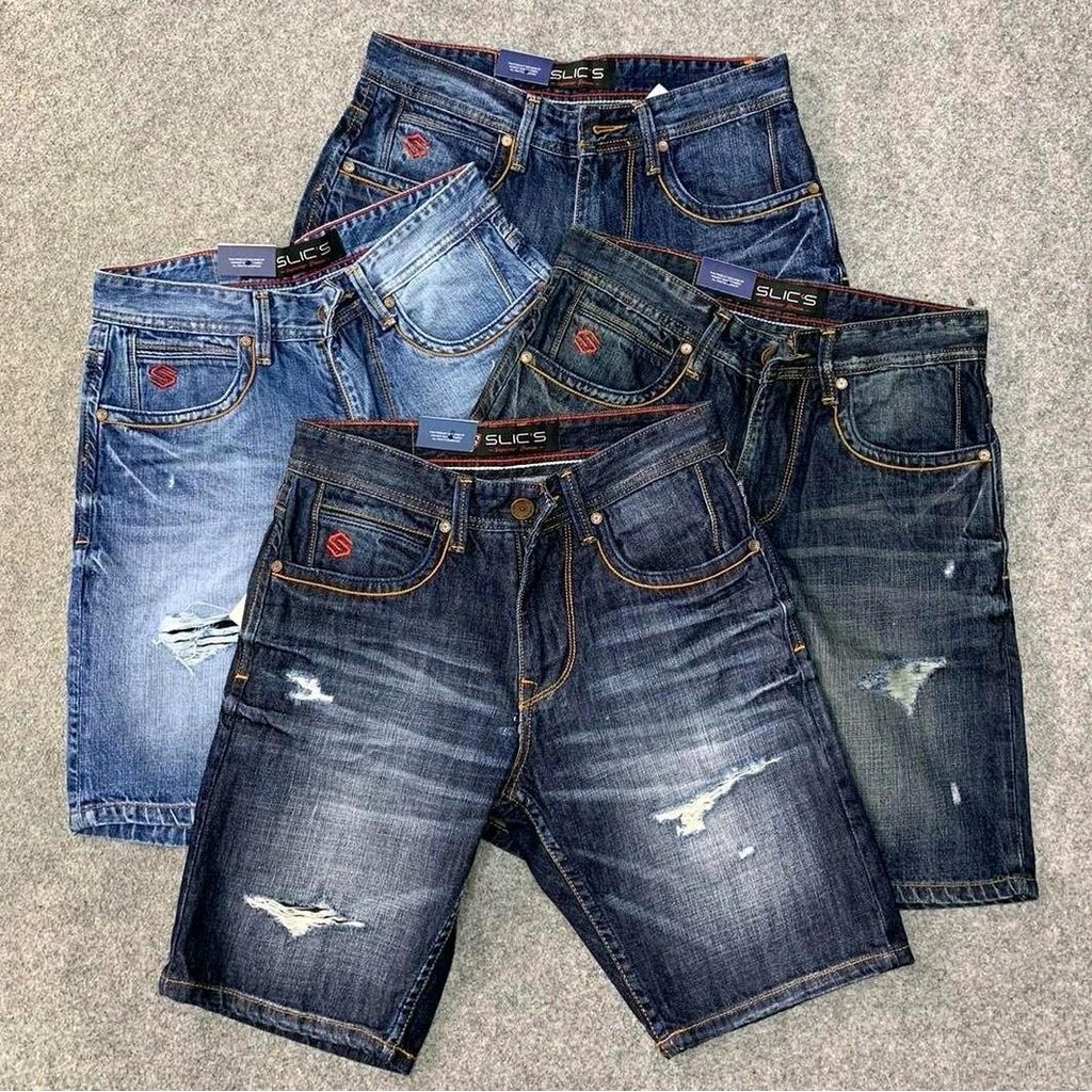 SLICS JEANS (RP5) CELANA JEANS PENDEK PRIA SOBEK LAPIS TIDAK MELAR