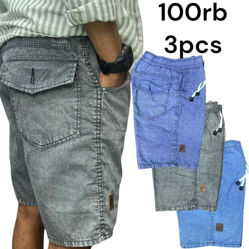 3PCS CELANA PENDEK PRIA DEWASA SANTAI BOARDSHORT PINGGANG KARET ELASTIS