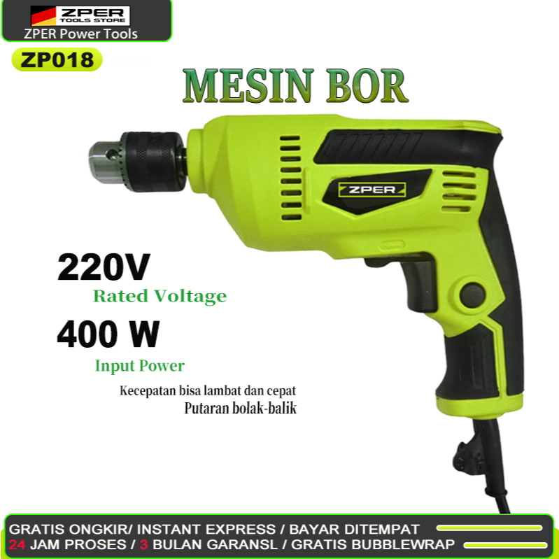 【100 PERSEN ORI】ZPER Mesin bor Bor tangan listrik Bor beton Bor tembok alat bor Obeng bor kayu ZP018