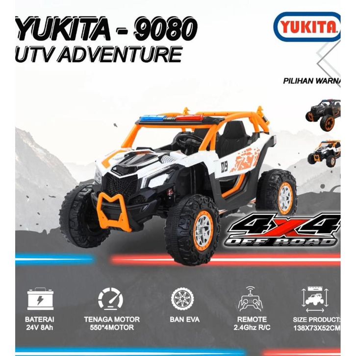 TERLARIS MAINAN ANAK MOBIL AKI ANAK YUKITA 9080 UTV ADVENTURE BAN KARET - PUTIH