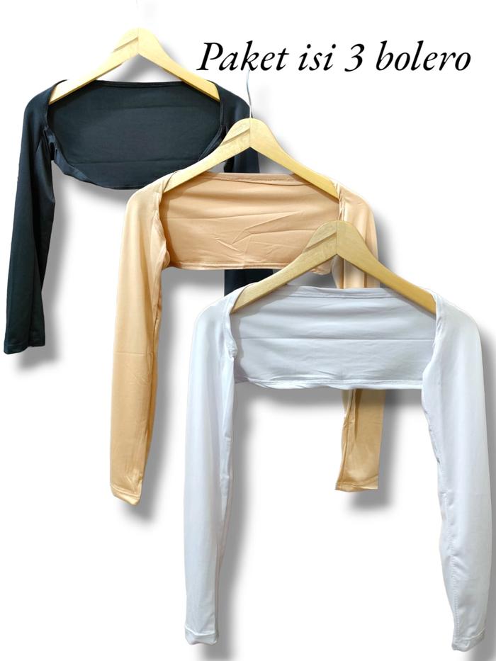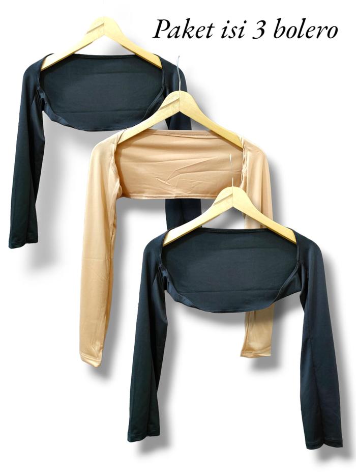 Paket Manset Tangan sambung Bolero isi 3 pcs Hitam Panjang Muslim Handsock - hitam hitam hitam Standar ( BB 35 - 60kg )