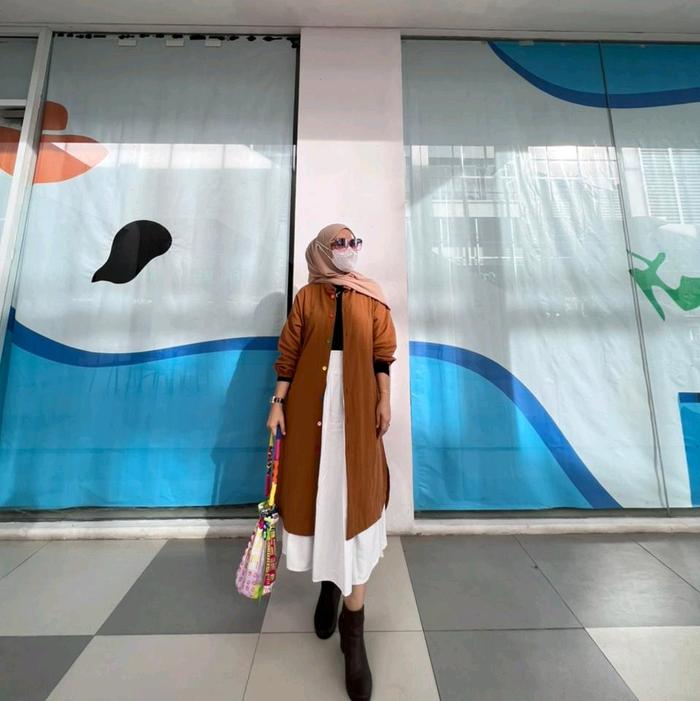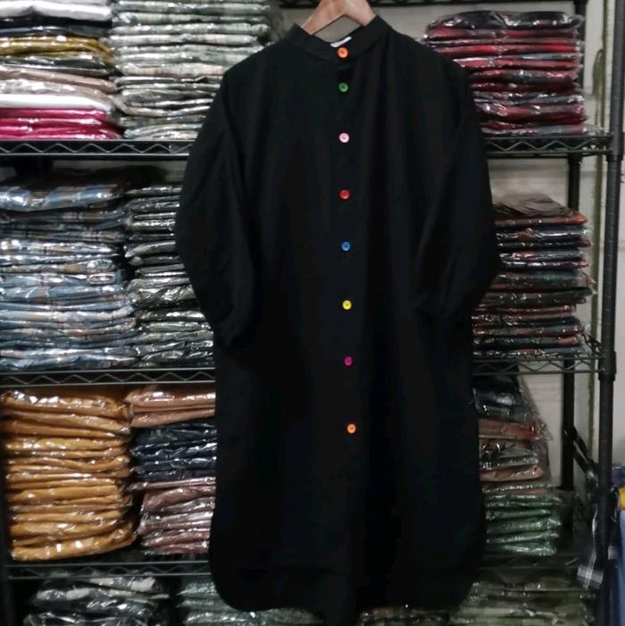Kania Tunik (Tunik Saja) Atasan Tunik Panjang Wanita Linen Muslim - Hitam Allsize