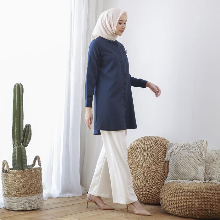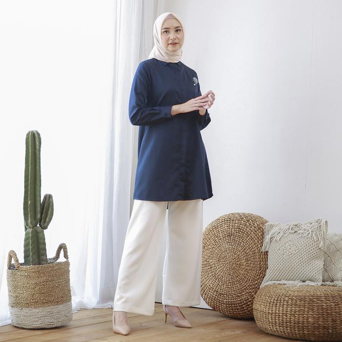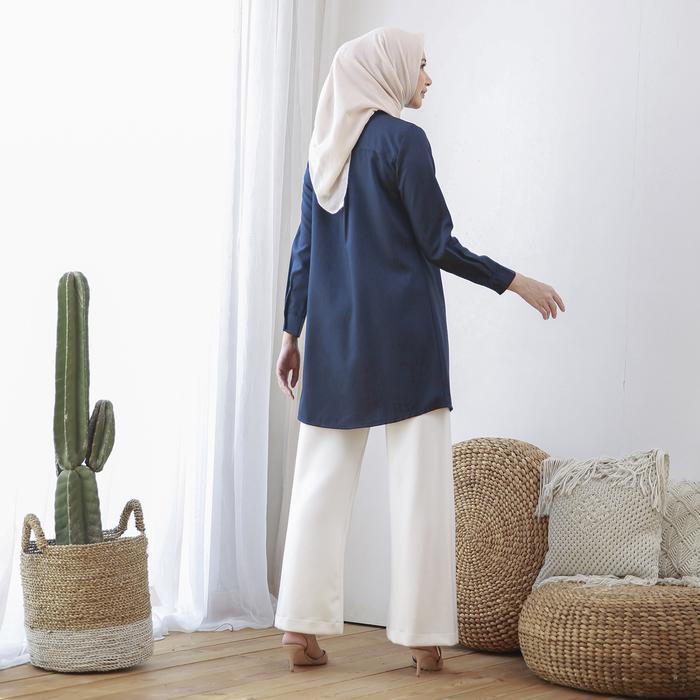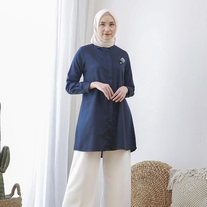 Wulfi Day to Day Kemeja Tunik Toyobo Fenomenal Ukuran Komplit Navy Kantor Muslim Nyaman Panjang - Navy XS