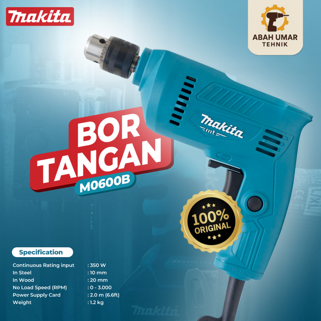 Bor Tangan Makita M0600B 350W – Mesin Bor Listrik Original Kuat & Ringan | Bisa Kayu & Besi