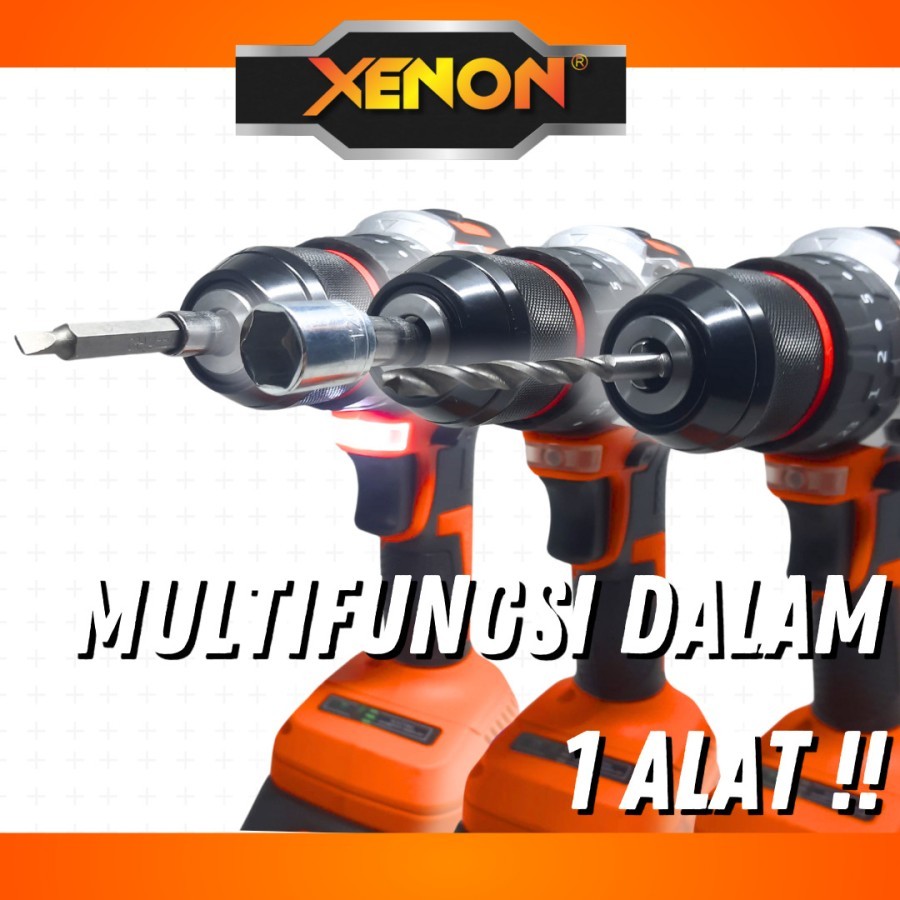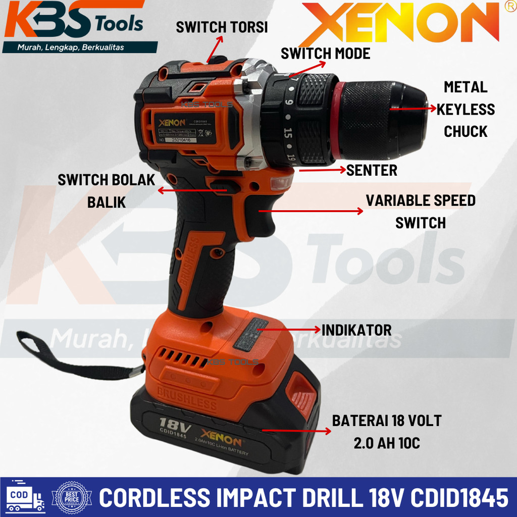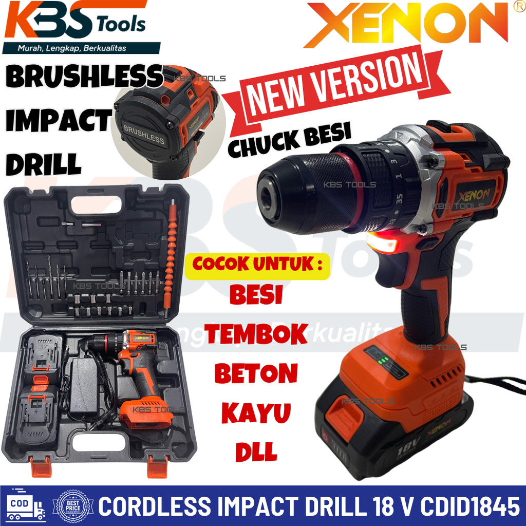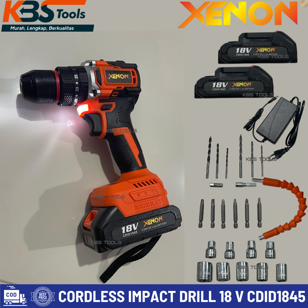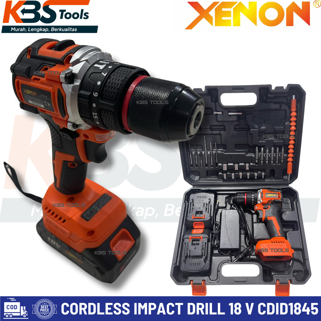 Cordless Drill Impact Mesin Bor Baterai Tembok Beton 18 V Full Set 2 Baterai XENON CDID1845 Bor Portable Tanpa Kabel