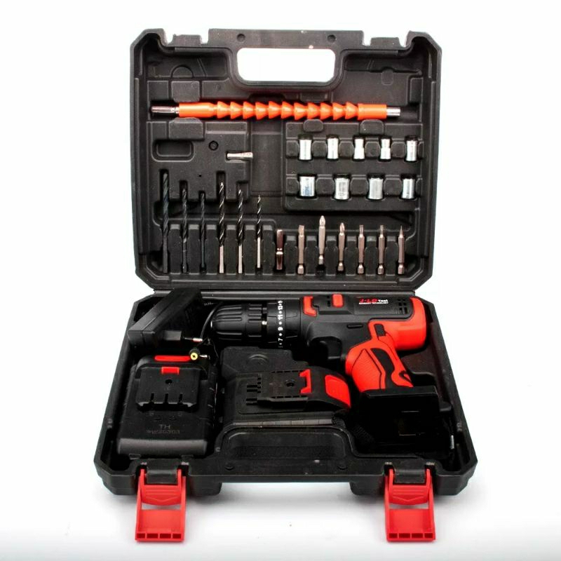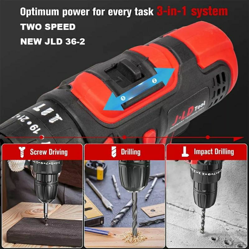 Promo JLD Mesin Bor 2 Baterai 36Vf Buat Tembok Beton Cordless Impact Hand Drill 10mm fullset Bisa Bolak Balik
