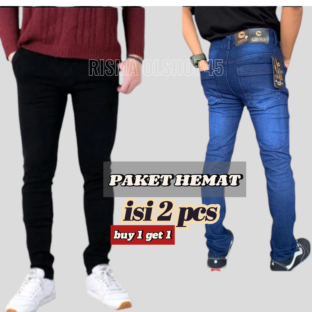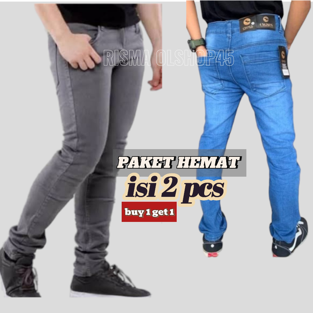 Paket Hemat Beli 1 Gratis Satu Celana Jeans Pria Slimfit Bahan Melar Sofe Jeans Premium Pensil Cowok