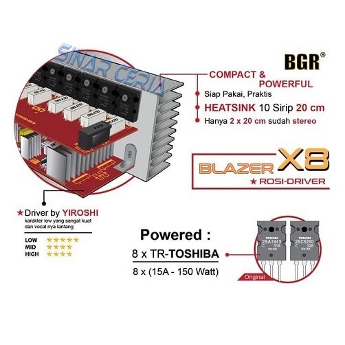 Kit Power Profesional Amplifier BLAZER X8 ROSI-DRIVER 800W Mono YIROSHI 800 Watt TR TOSHIBA ASLI