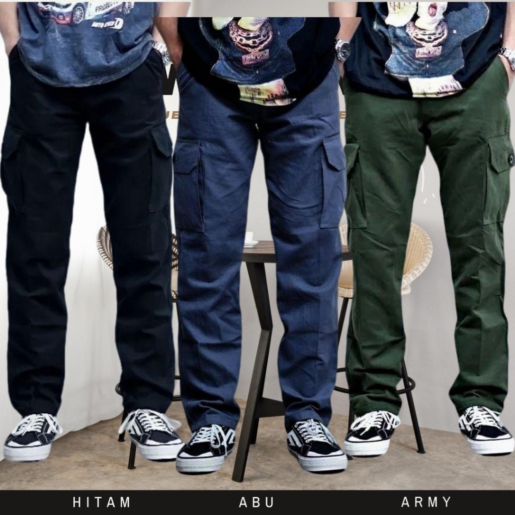 PROMO PAKET SUPER HEMAT 90 RIBU DAPAT 3 PCS CELANA PANJANG CARGO PINGGANG RIB KARET