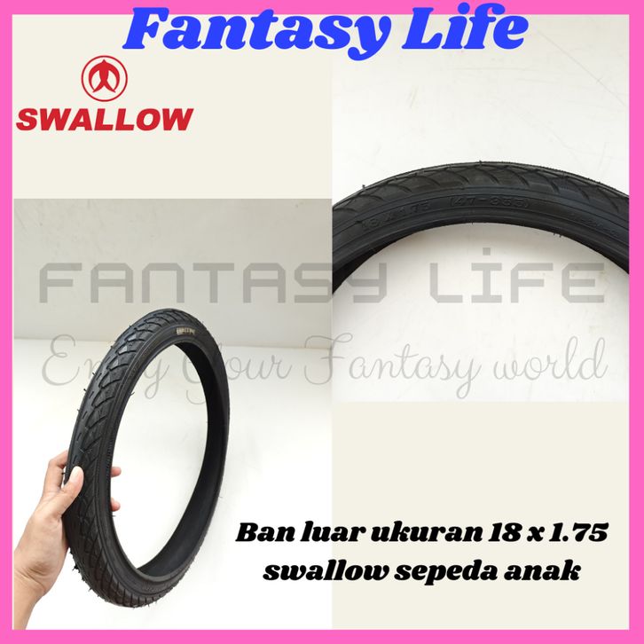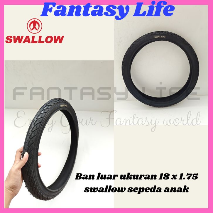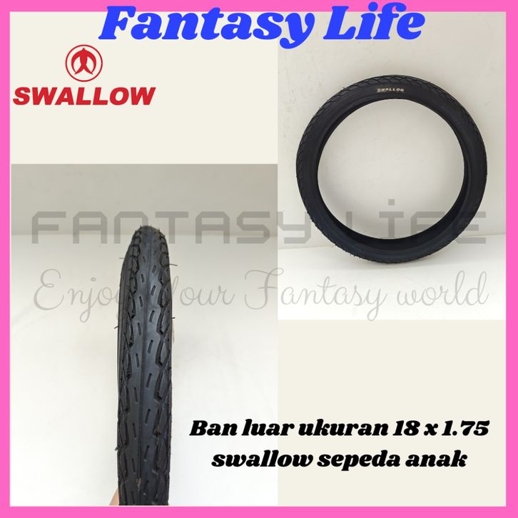 Fantasy Ban luar ukuran 18 x 1.75 Swallow hitam SA-206 sepeda anak mini