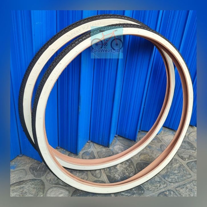 Ban Luar Sepeda Ukuran 26 x 1 3/8 Lucky Stone Hitam Putih Jengki CTB Mini High Quality