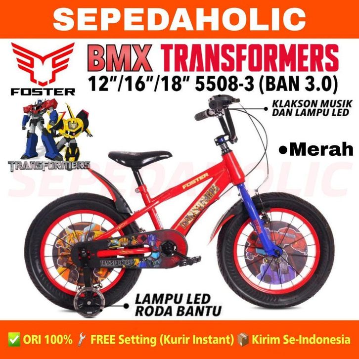 Sepeda Anak Laki BMX FOSTER 5508-3 TRANSFORMERS Ban Jumbo 3.0 Ukuran 12 16 18 Inch Usia 2-8 Tahun