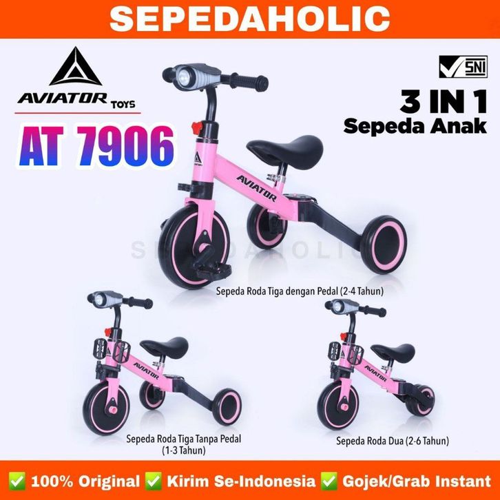 Balance Bike AVIATOR AT 7905 7906 (3 In 1) Sepeda Tricycle Push Bike Anak Musik
