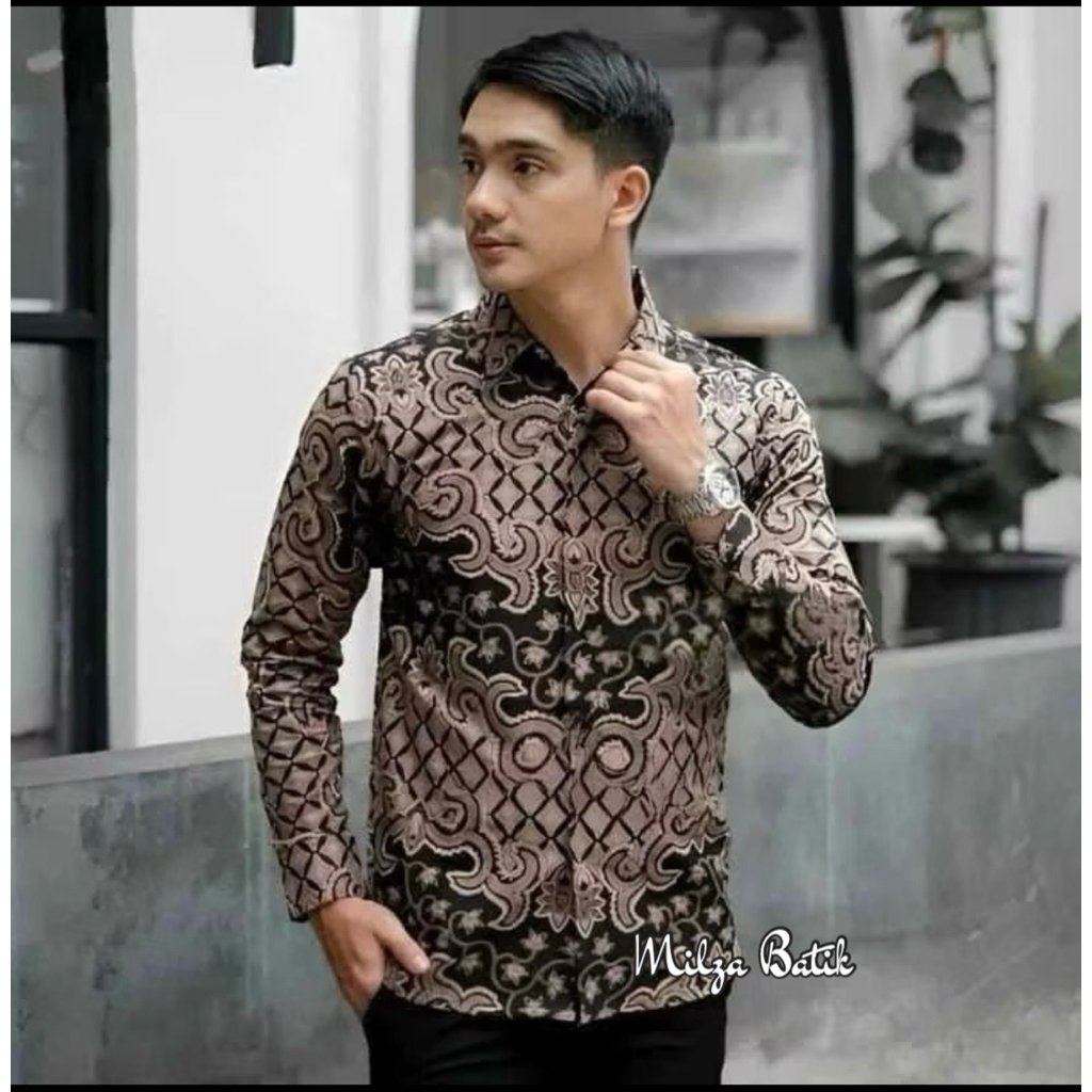 Batik Pria Lengan Panjang Milza Batik HRB026 motif KERATONAN Kode 002 size M L XL XXL