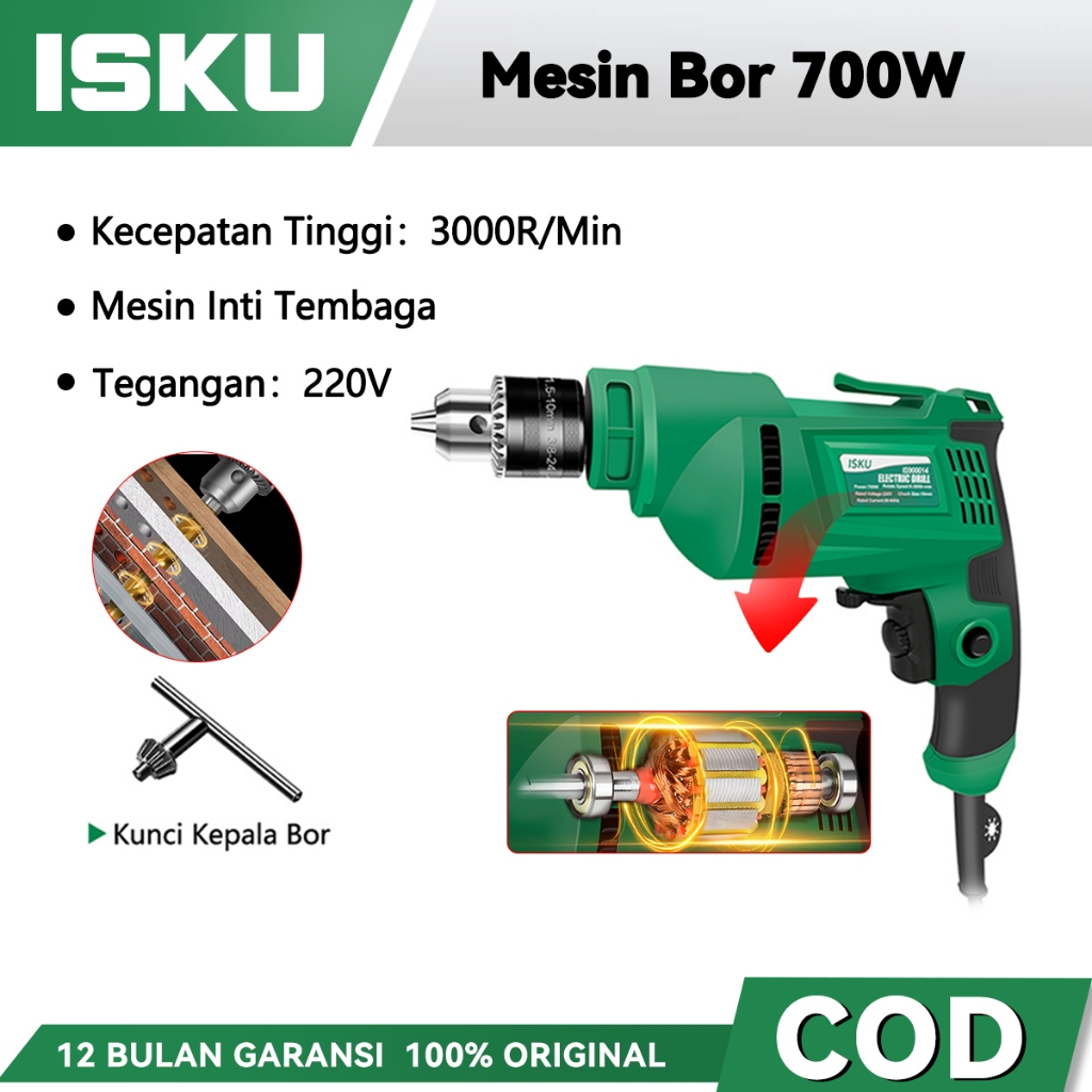 Isku Mesin Bor Listrik 700W 220V Bolak Balik Electric Drill Beton Besi Tembok Bor Bor Listrik Impact