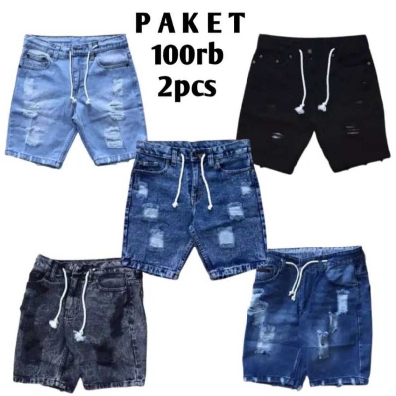 PAKET SUPER HEMAT 100 RIBU DAPAT 2 PCS CELANA JEANS PENDEK SOBEK PRIA