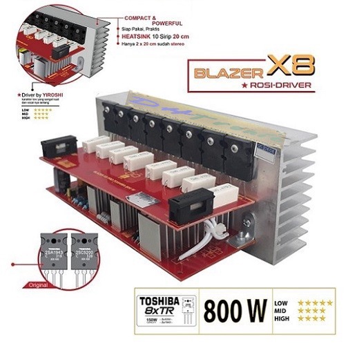 Kit Power Amplifier Blazer X8 ROSI-DRIVER 800W Mono TR TOSHIBA ASLI Profesional Audio Sound System Yiroshi 800 Watt