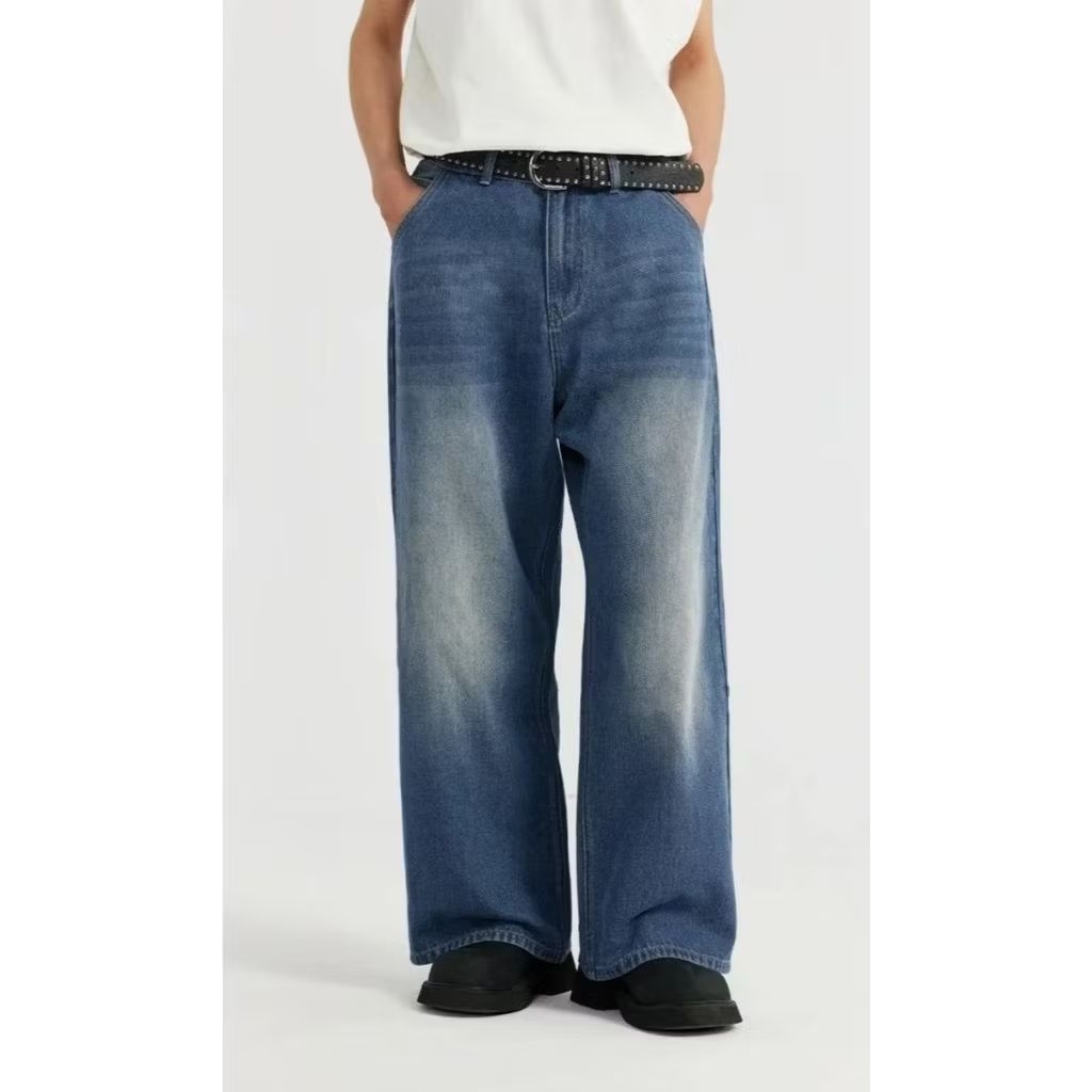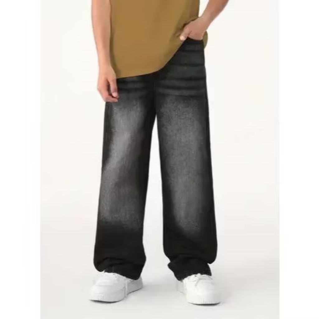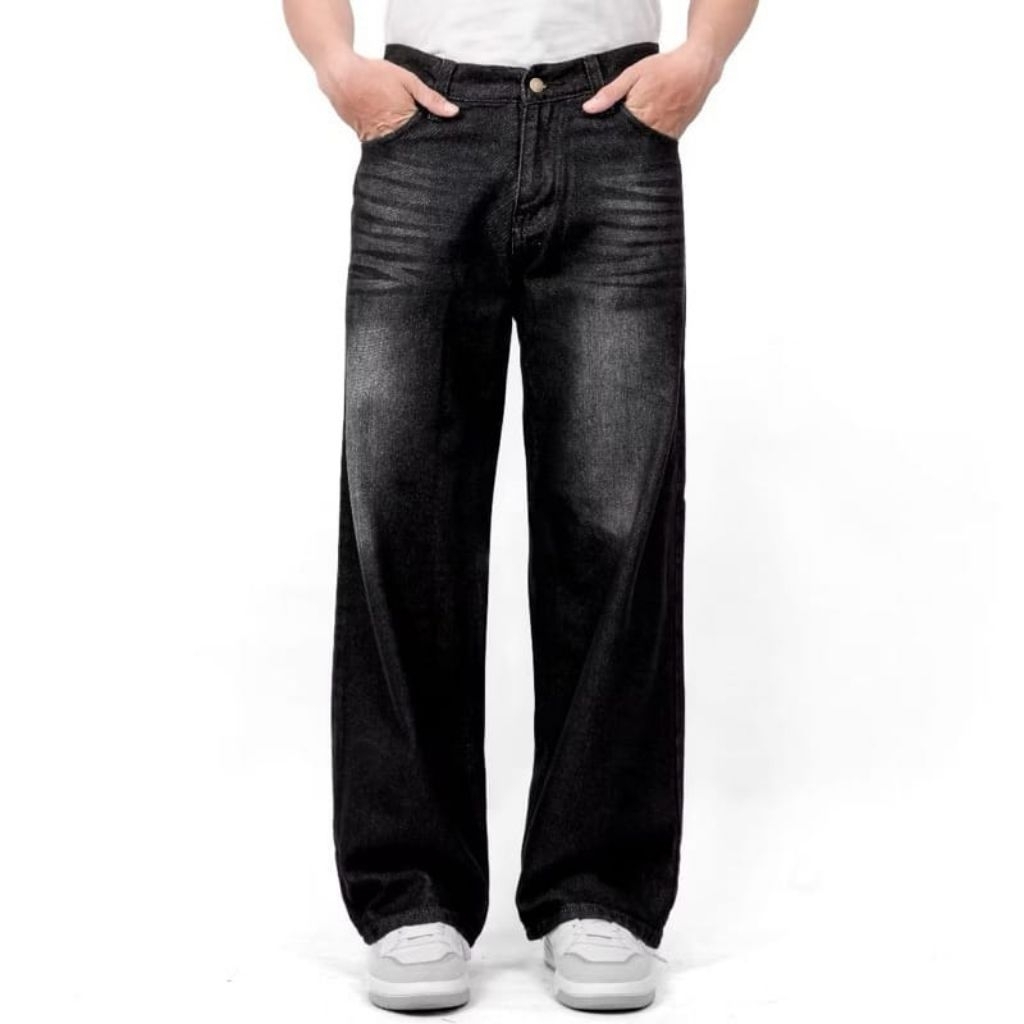 OZA.LTD - Celana Jeans Wide Leg Wisker Lebar Gombrong Skena Black Pria Loose Fit Jumbo