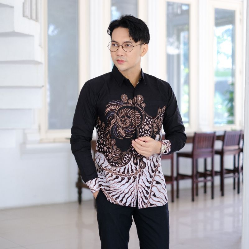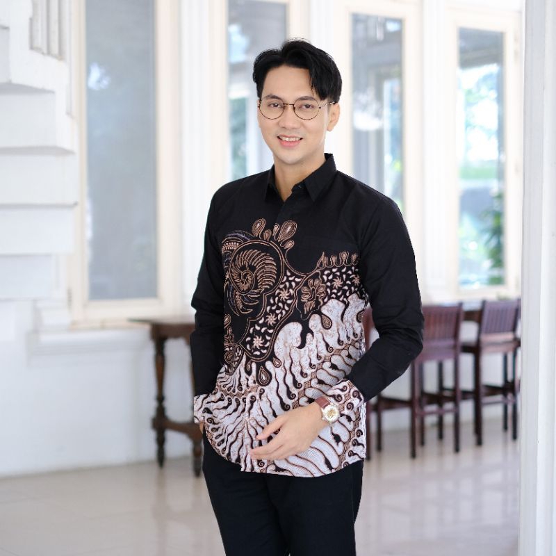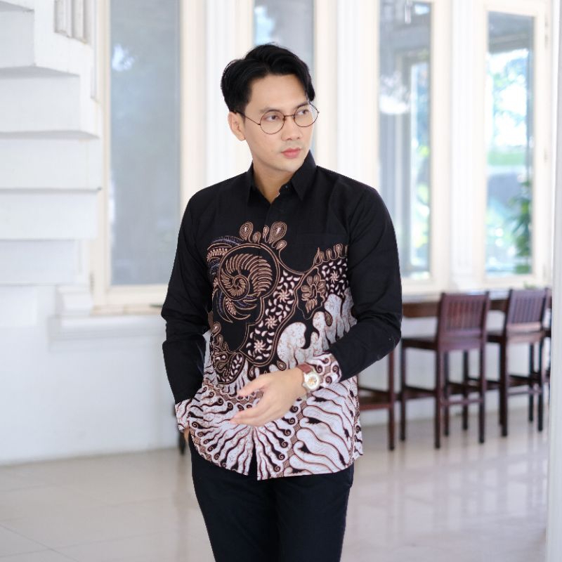 Motif Rangkong Hitam Kemeja Batik Pria Slimfit Lengan Panjang Lapis furing Baju Batik Pria Hem Batik Pria Jumbo
