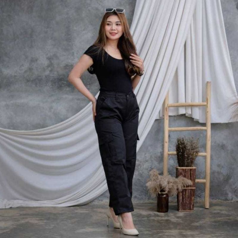 Cargo Katun Twill Combet Street /Celana Wanita Hightwaist // Kulot Kargo Wanita Melar// Celana Jumbo